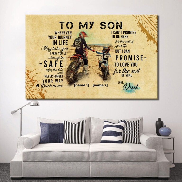 At CubeBik, besides canvases, we also offer tees, hoodies, sweaters, raglans, tanks, wall arts, posters, mugs, blankets, engraved jewelry, personalized necklaces, printed face masks, throw pillows, tote bags, hats, accessories and more on our website, so do not miss our other Gift for My Son, Gift for My Son from Dad, to My Son Poster, to My Son Canvas from Dad, to My Son Canvas Art, to My Son Motorcycle Poster, to My Son Motorcycle Canvas, Motorcycle Wall Art, Personalized Motorcycle Gifts, Vintage Motorcycle Posters, Motorcycle Art, Vintage Motorcycle Art, Motorcycle Art Prints, Motorcycle Wall Decor, Motorcycle Canvas Art, Motorcycle Poster related merchandise. Moreover, all the products are made-to-order and one of a kind custom designs you can’t get elsewhere in normal stores. Let’s discover CubeBik.com now and find your favorite personalized items. We can’t wait to surprise and build beautiful memories with you and your loved ones.