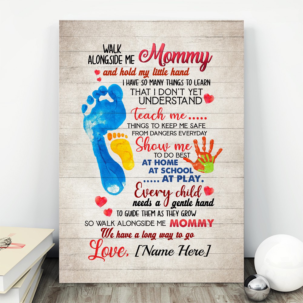 Shop Personalized Walk Alongside Me Mommy and Hold My Little Hand Framed Canvas Prints – Unframed Poster.