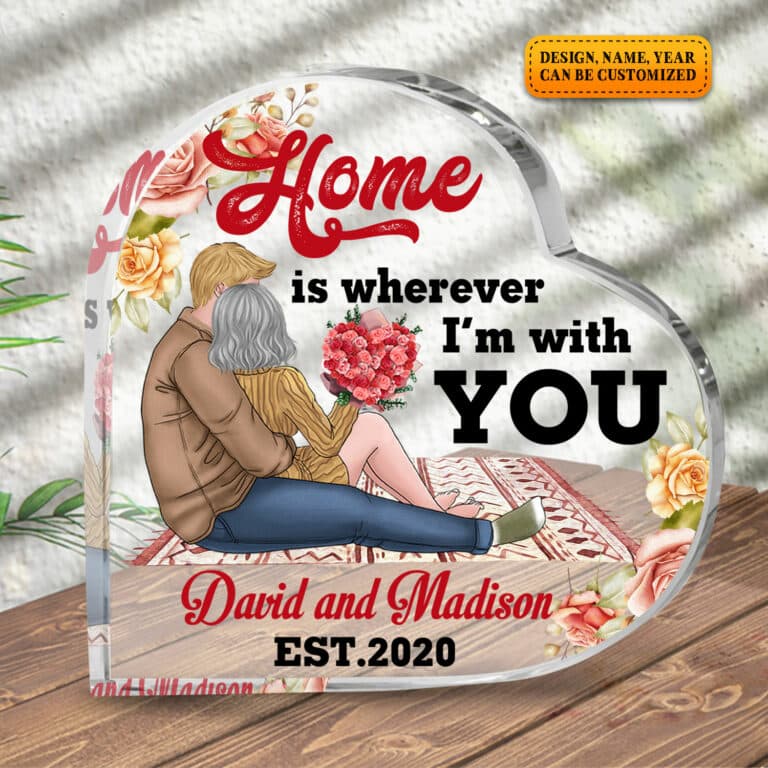 Let’s Shop Personalized Anniversary Gifts Home Is Wherever I’m With You Heart Shaped Acrylic Plaque, Custom Clipart Couple Gifts!