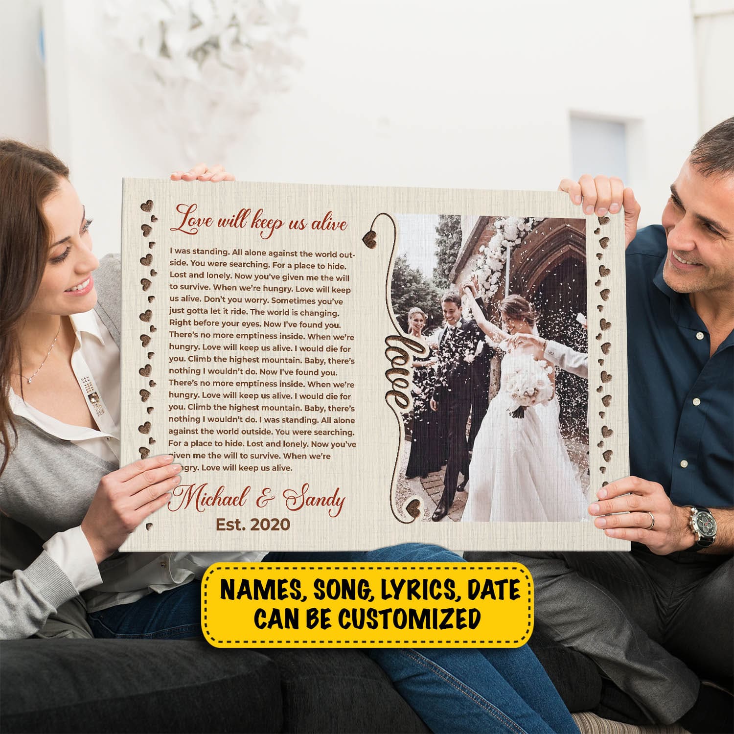Are you spending too much time to find creative merchandise for you or suitable & special gifts for your mommy, your daddy, your son, your daughter, your children, your friends or someone you love? The struggle is over because we have various Wedding Gift Ideas for Couple, Couple Gift Ideas for Wedding, Gift Idea for Couple Anniversary, Cute Couple Gift Idea, 365 Canvas Song Lyrics, First Dance Lyrics Canvas, Song Lyric Wall Art which will make perfect presents for your beloveds. In order to make your present stand out, we have created lots of unique and awesome customized photo gifts & personalized designs.