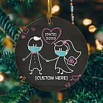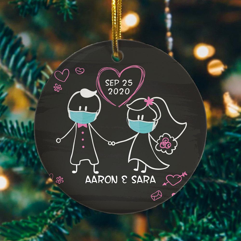 Let’s Shop Personalized Bride And Groom Wedding Newlywed Couple With Mask During Quarantine Circle Christmas Ornament!