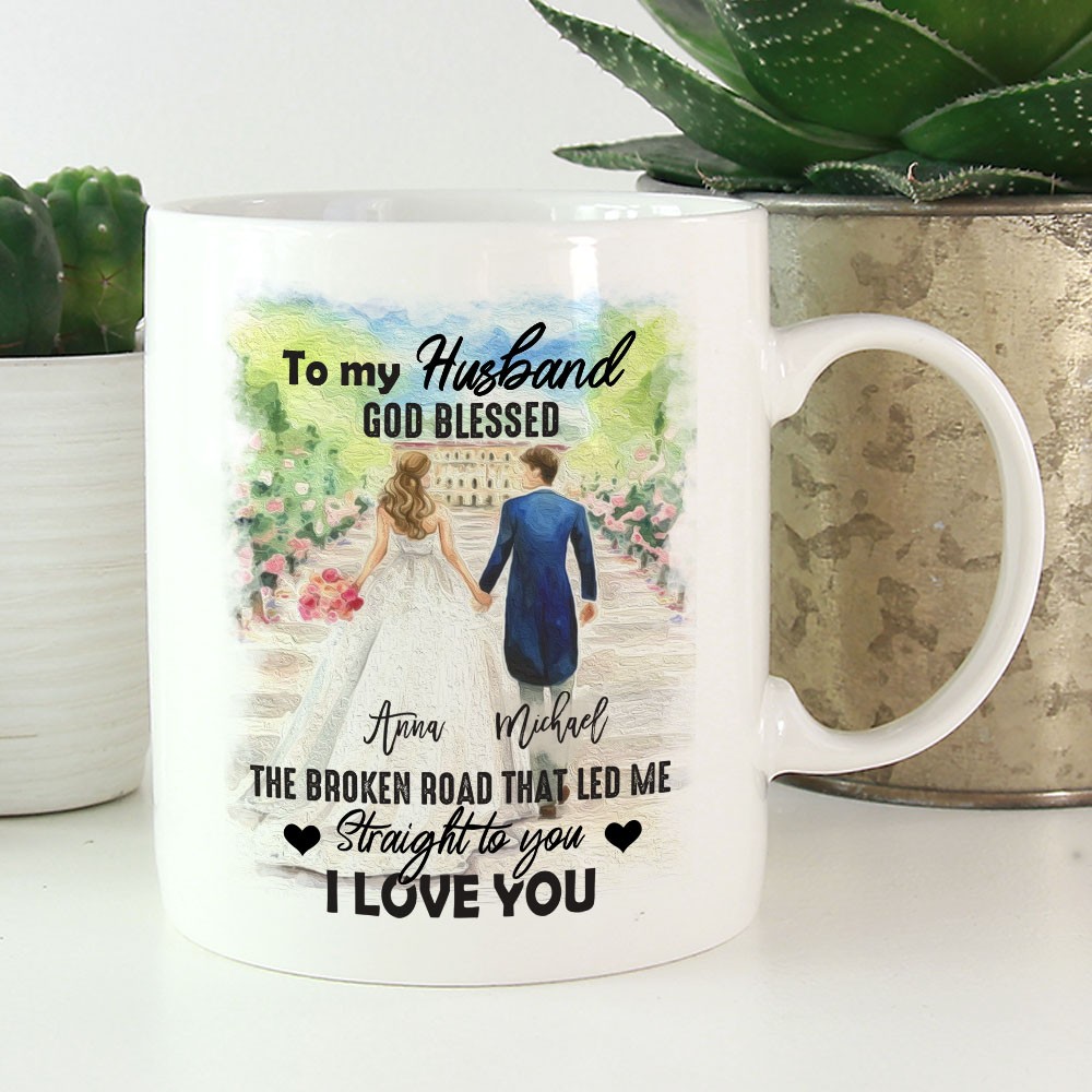 Shop Personalized to My Husband God Blessed the Broken Road That Led Me Straight to You Coffee Mug-Beer Stein-Water Bottle.