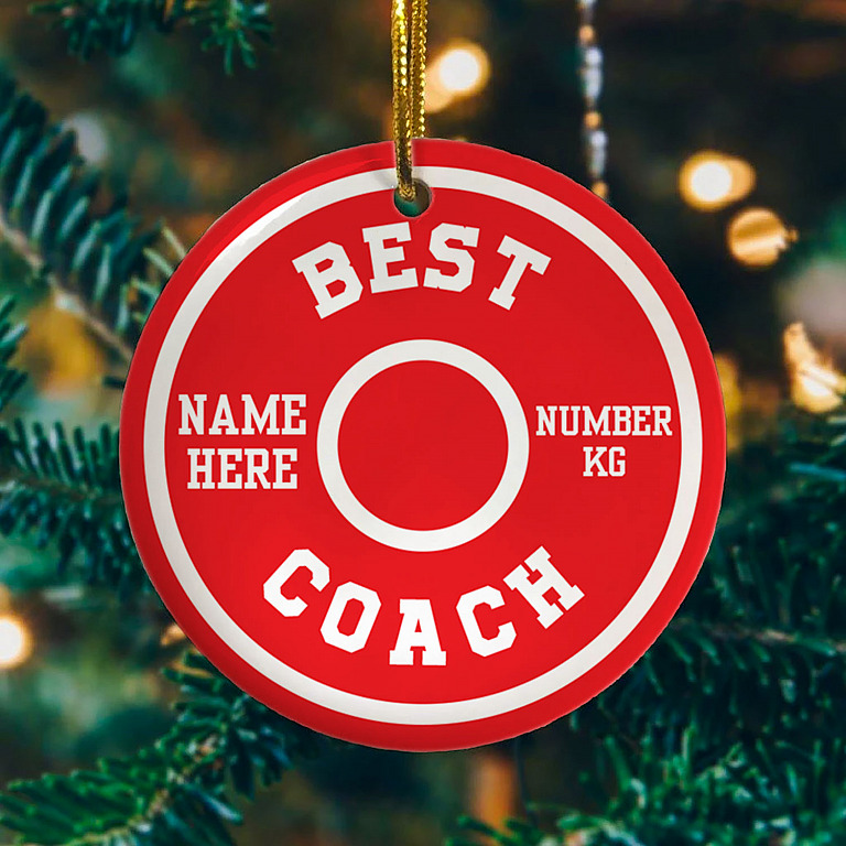 Let’s Shop Personalized Best Coach Fitness Weightlifting Gift for Trainers Christmas Flat Holiday Circle Ornament Keepsake!