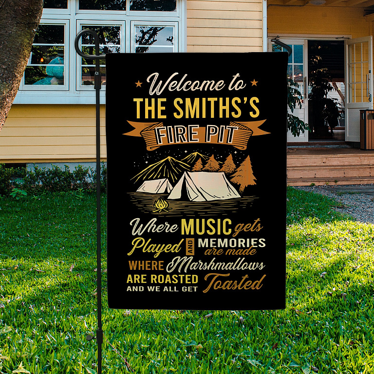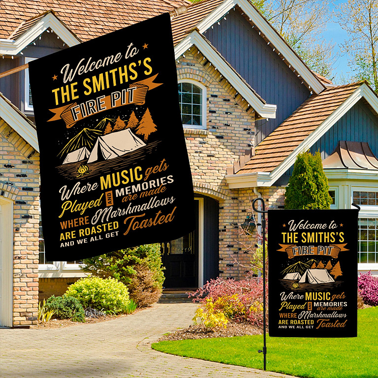 Let’s Shop Personalized Welcome to Our Fire Pit Decorative Garden Flag – Indoor Outdoor Flag – Camping Flag!