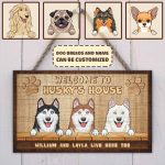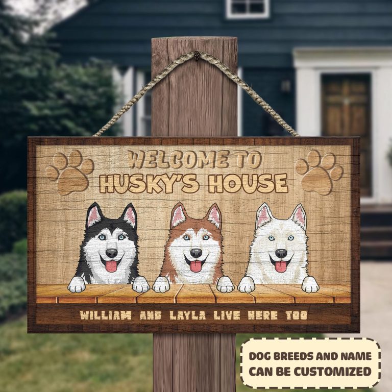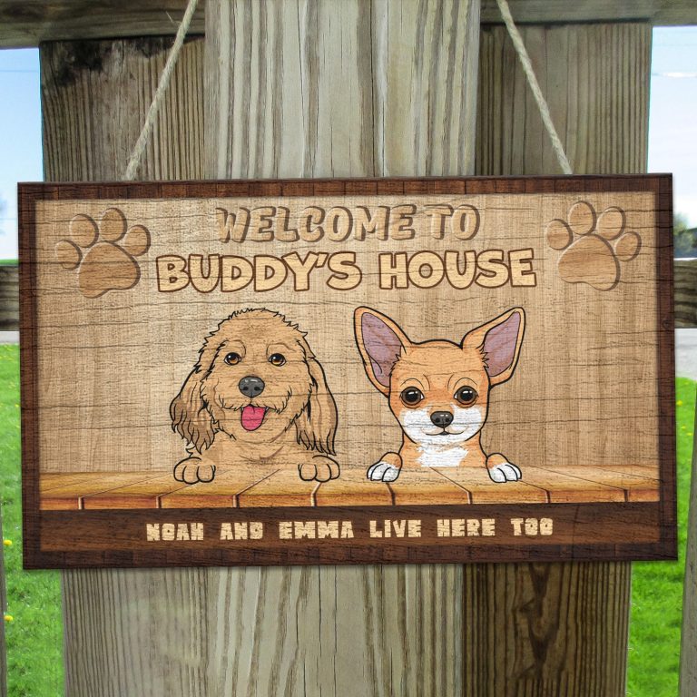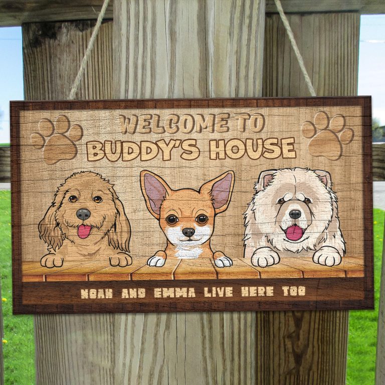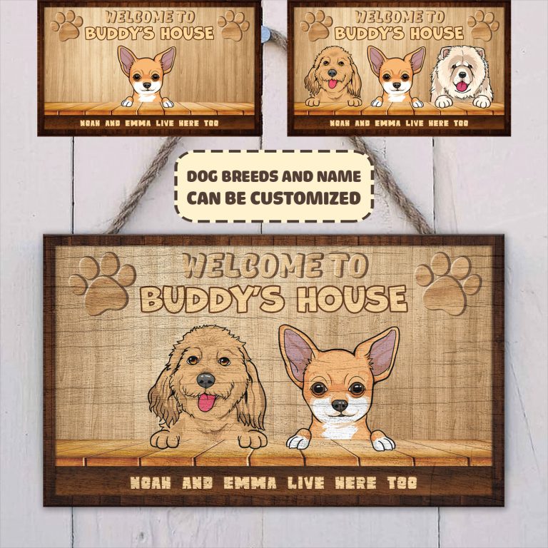 Let’s Shop Personalized Welcome to Our House Decorative Wooden Door Sign – Custom Dog Breeds Front Porch Sign Indoor Outdoor Home Decor!