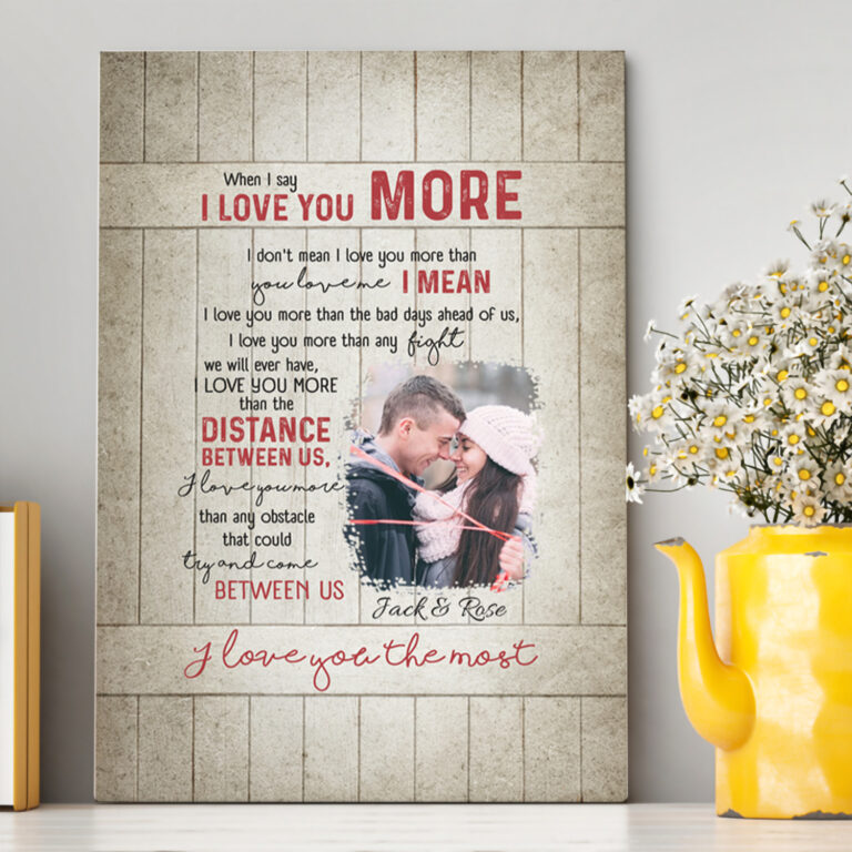 Are you spending too much time to find creative merchandise for you or suitable & special gifts for your mommy, your daddy, your son, your daughter, your children, your friends or someone you love? The struggle is over because we have various Personalized When I Say I Love You More Canvas, When I Say I Love You More Poster, Personalized Husband and Wife Canvas, Personalized To My Wife Photo Canvas, Custom To My Wife Photo Canvas, Personalized To My Wife Canvas, My Wife Photo Frame, Canvas Photo Gifts, Anniversary Gifts Photo Canvas, Custom Wife Photo Canvas, Personalized Photo Gifts Canvas which will make perfect presents for your beloveds. In order to make your present stand out, we have created lots of unique and awesome customized photo gifts & personalized designs.