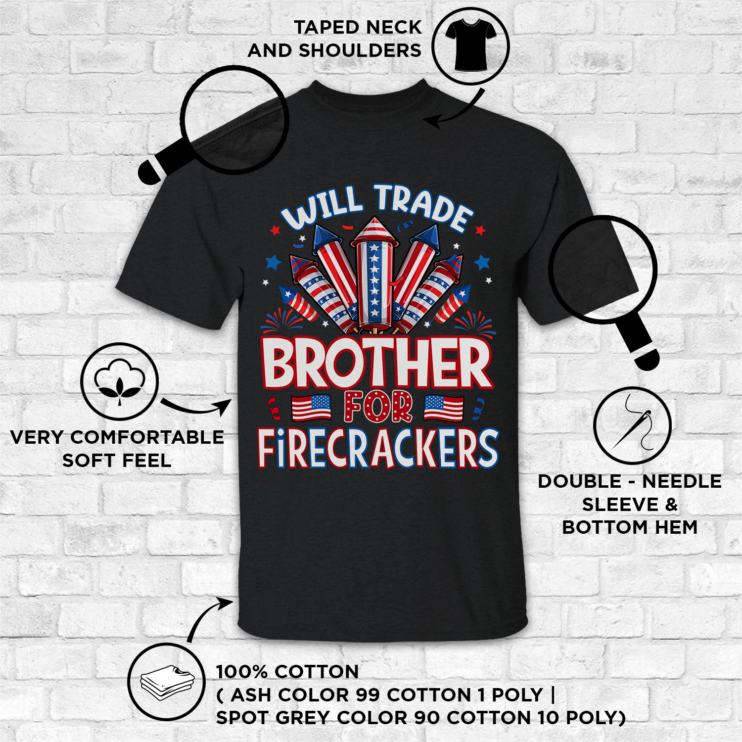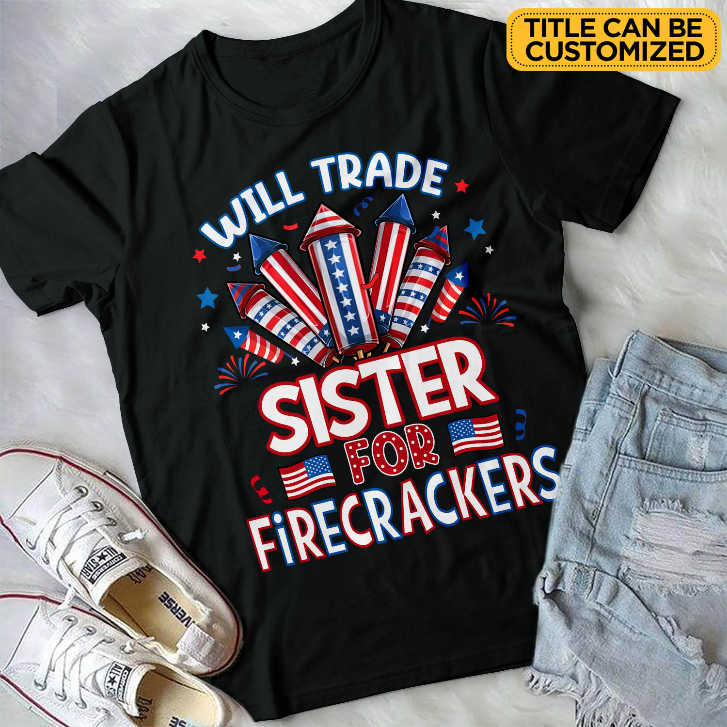 Are you spending too much time to find creative merchandise for you or suitable & special gifts for your mommy, your daddy, your son, your daughter, your children, your friends or someone you love? The struggle is over because we have various Will Trade Brother for Firecrackers Shirt, Will Trade Sister for Firecrackers Shirt, Personalized 4th of July Shirts, Personalized 4th of July Shirt, Will Trade for Firecrackers Shirt, Funny July 4th T-Shirt, Custom Family Fireworks Shirt, Kids Patriotic Tee which will make perfect presents for your beloveds. In order to make your present stand out, we have created lots of unique and awesome customized photo gifts & personalized designs.