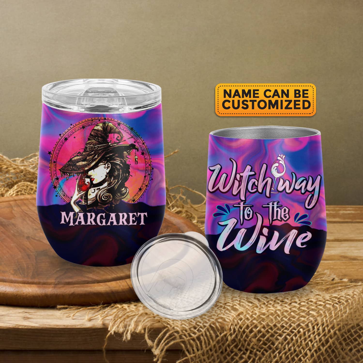 Let’s Shop Personalized Witch Way To The Wine Double Wall Vacuum Insulated Cup – Witch Halloween Wine Tumbler with Lid!