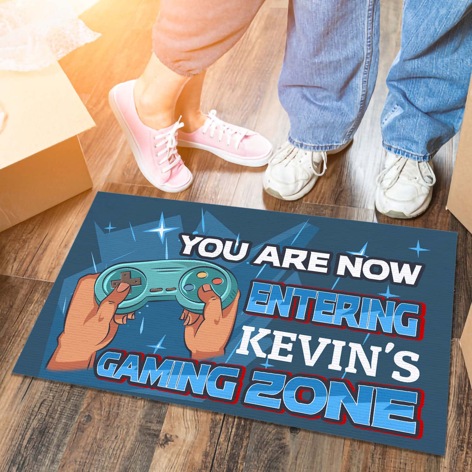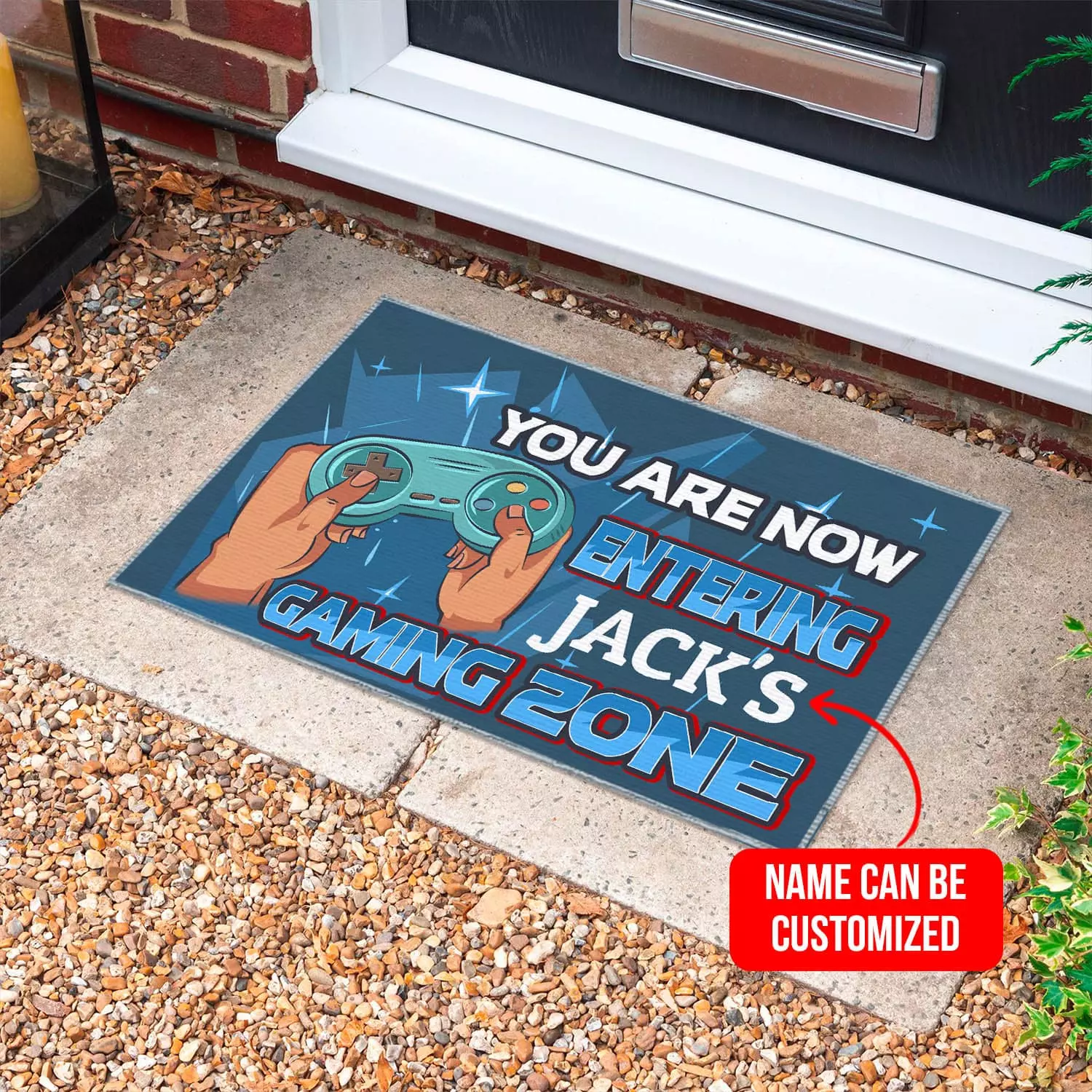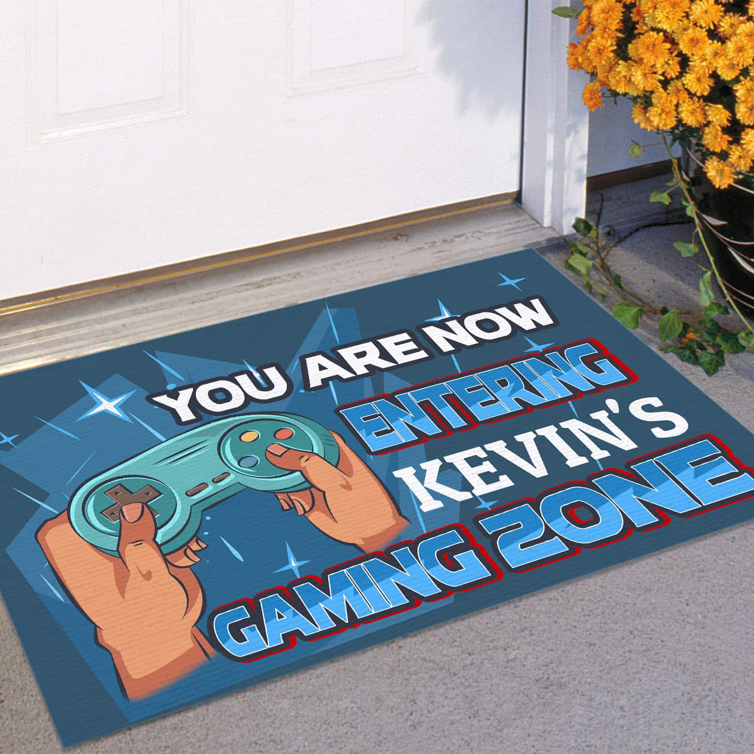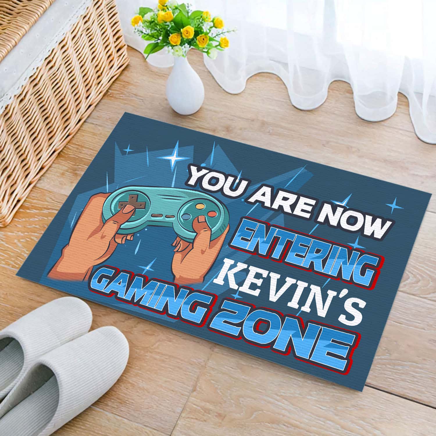 Let’s Shop Personalized You Are Entering Now Gaming Zone Indoor Outdoor Doormat – Video Gamer Personalized Doormat!