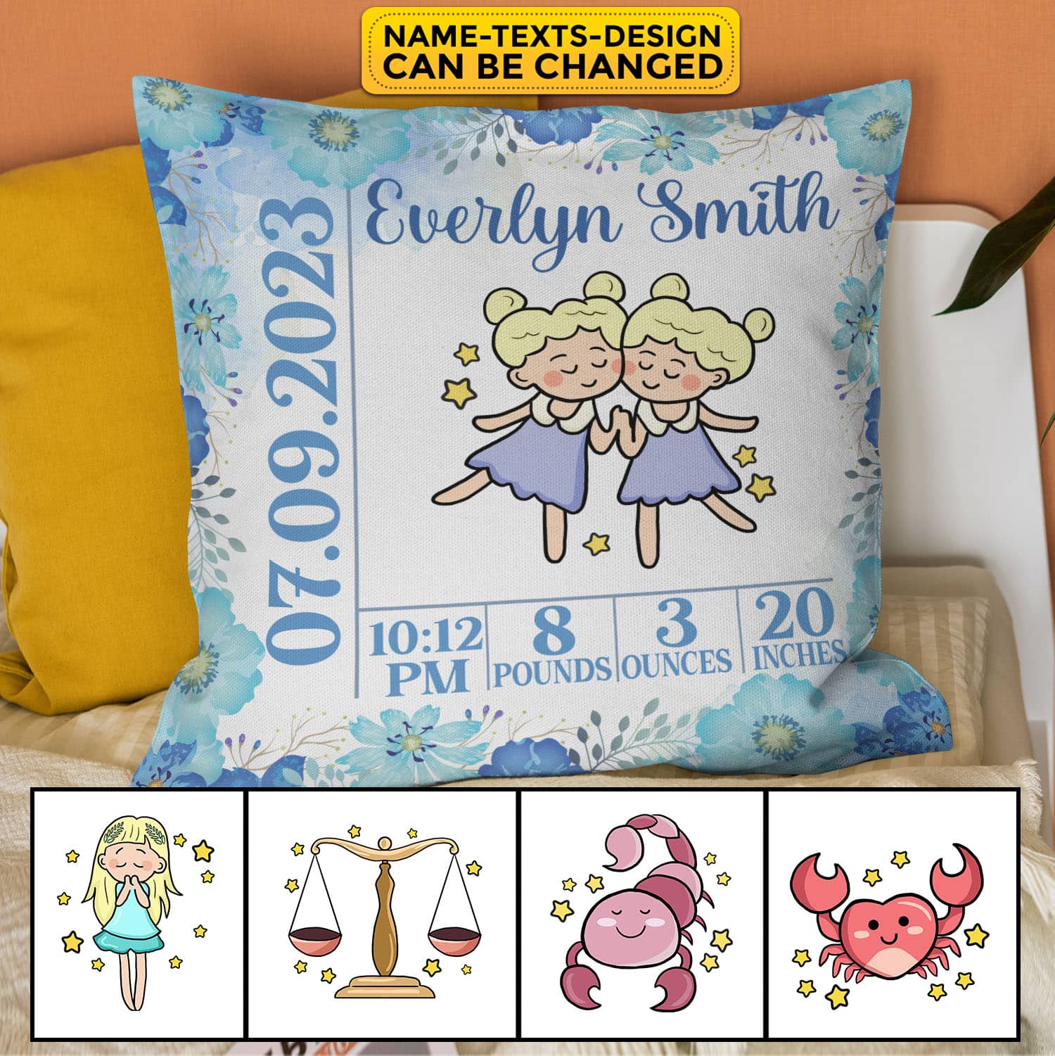 Let’s Shop Personalized Zodiac Baby Pillow – Baby Pillow for Girls Boys with Name – Custom Gift for Baby – Horoscopes Pillow for Baby!