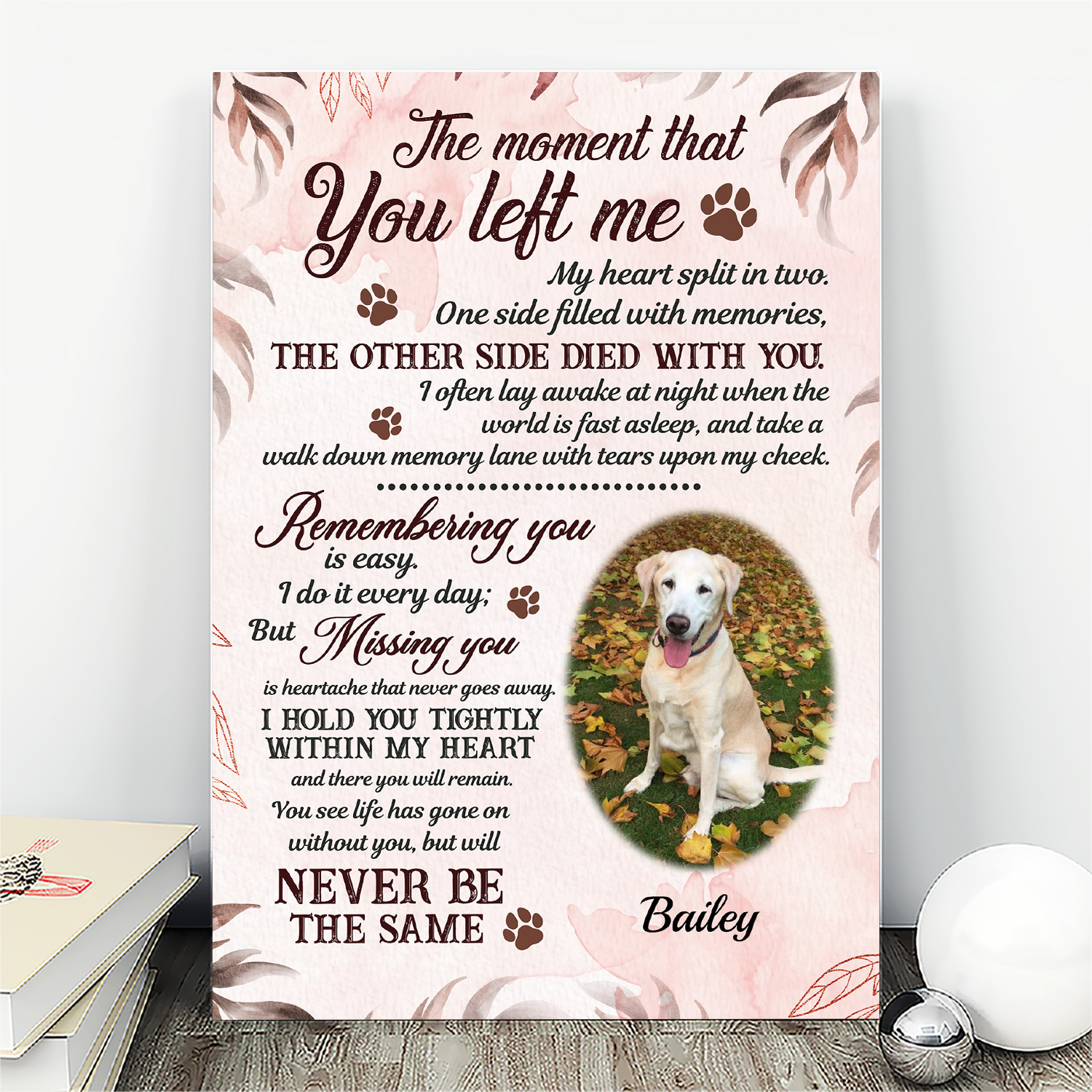 Let’s Shop Personalized Photo The Moment That You Left Me My Heart Split In Two Loss of Dog Framed Canvas – Unframed Poster!
