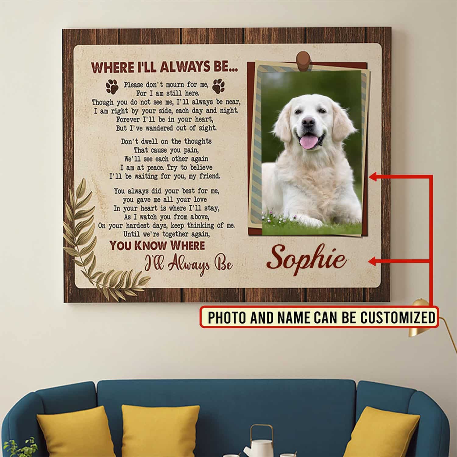Let’s Shop Personalized Pet Photo Where I’ll Always Be Framed Canvas Prints – Unframed Poster – Home Decor Wall Art!