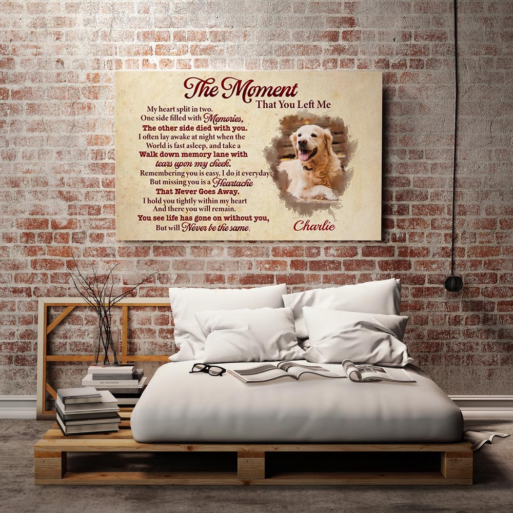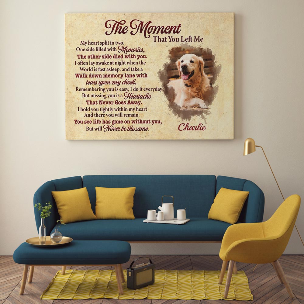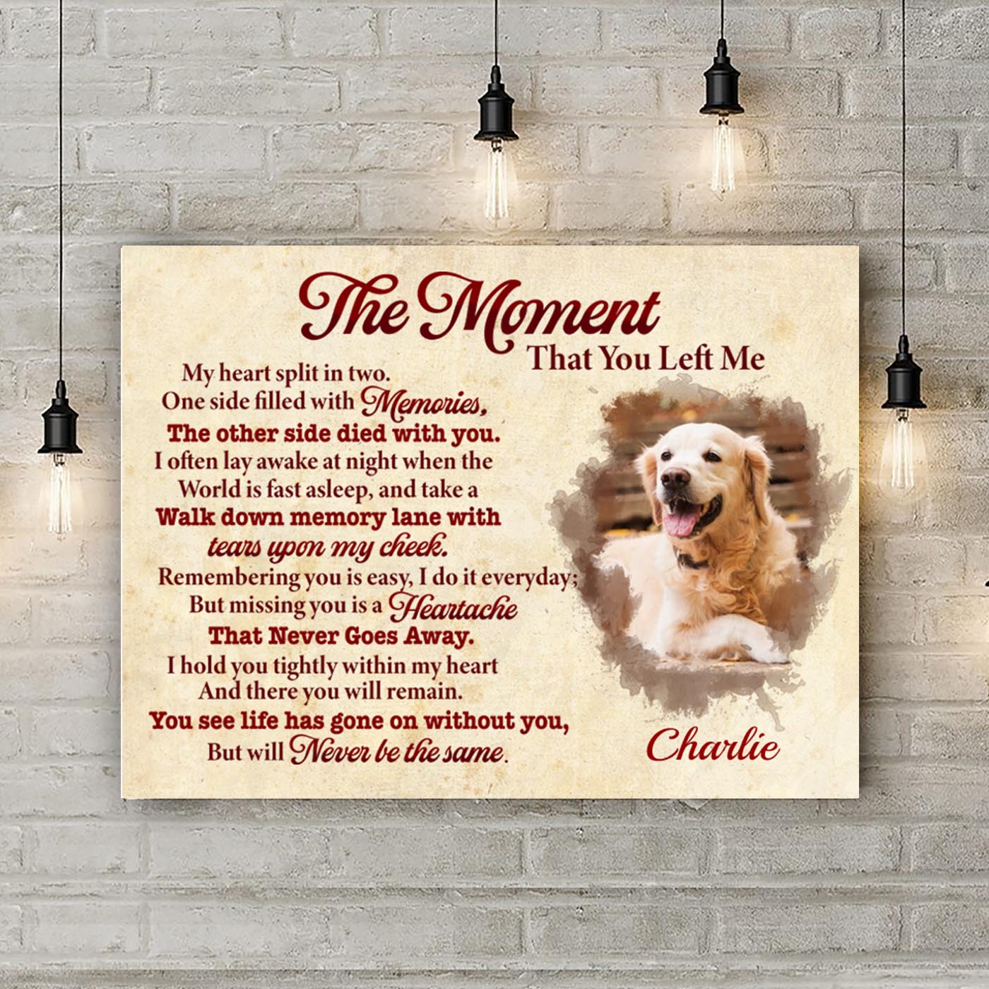 Let’s Shop Personalized Photo The Moment That You Left Me My Heart Split In Two Pet Loss Framed Canvas – Unframed Poster!