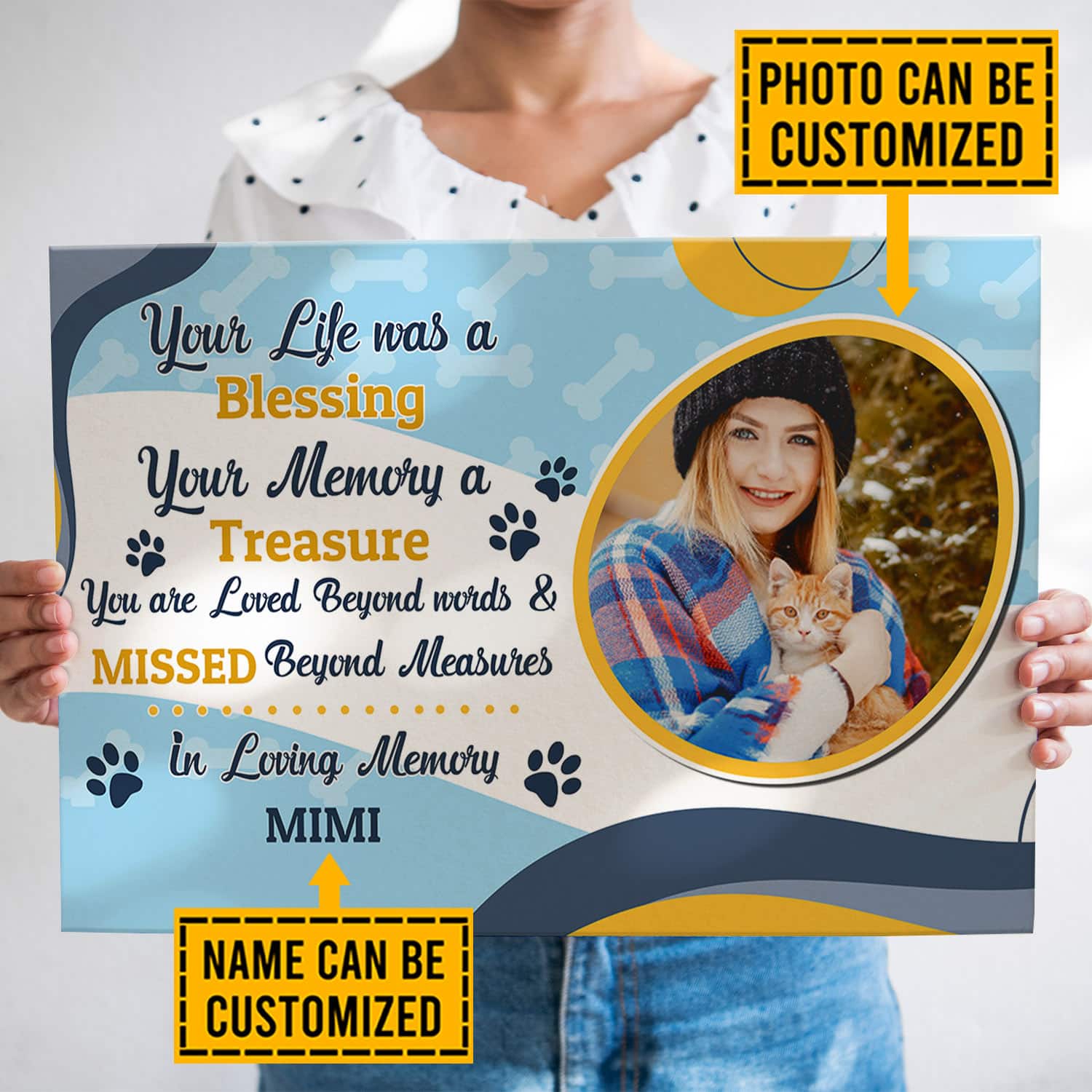 Let’s Shop Personalized Photo Your Life Was A Blessing Your Memory A Treasure Dog Cat Memorial Canvas Prints – Unframed Poster!