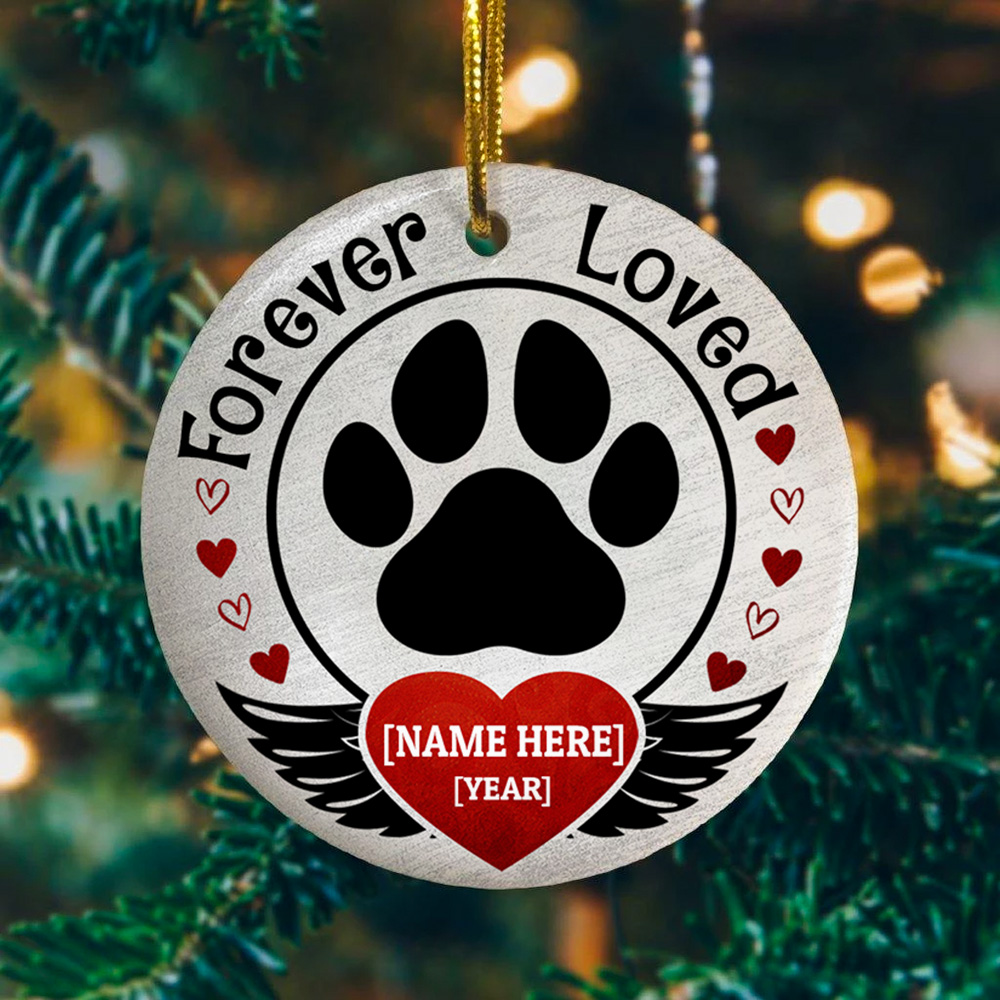 Let’s Shop Forever Loved Personalized Pet Memorial Ornament – Loss Of Dog Or Cat Flat Circle Ornament!
