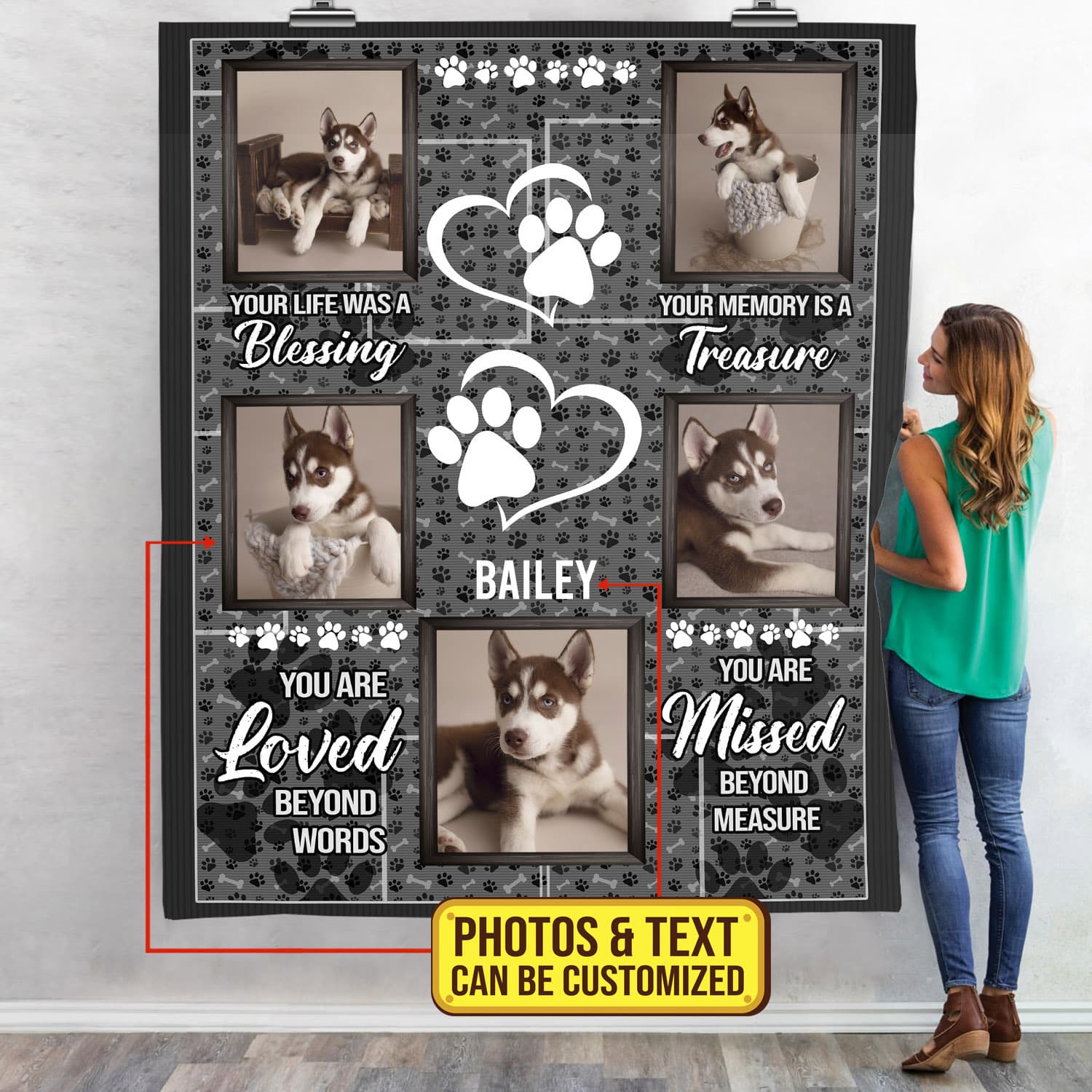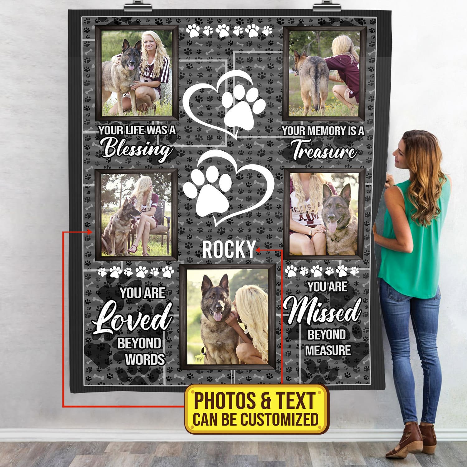 Are you spending too much time to find creative merchandise for you or suitable & special gifts for your mommy, your daddy, your son, your daughter, your children, your friends or someone you love? The struggle is over because we have various Pet Loss Blanket, Pet Memory Blanket, Dog Memorial Blanket, Personalized Dog Memorial Gifts, Your Life Was a Blessing Blanket, Your Life Was a Blessing Your Memory a Treasure Blanket, Pet Commemorative Gifts, Personalized Pet Memorial Gifts, in Loving Memory Photo Blanket Gifts for Pet Owner, Gifts to Remember a Lost Pet, Custom Pet Memorial Blanket which will make perfect presents for your beloveds. In order to make your present stand out, we have created lots of unique and awesome customized photo gifts & personalized designs.