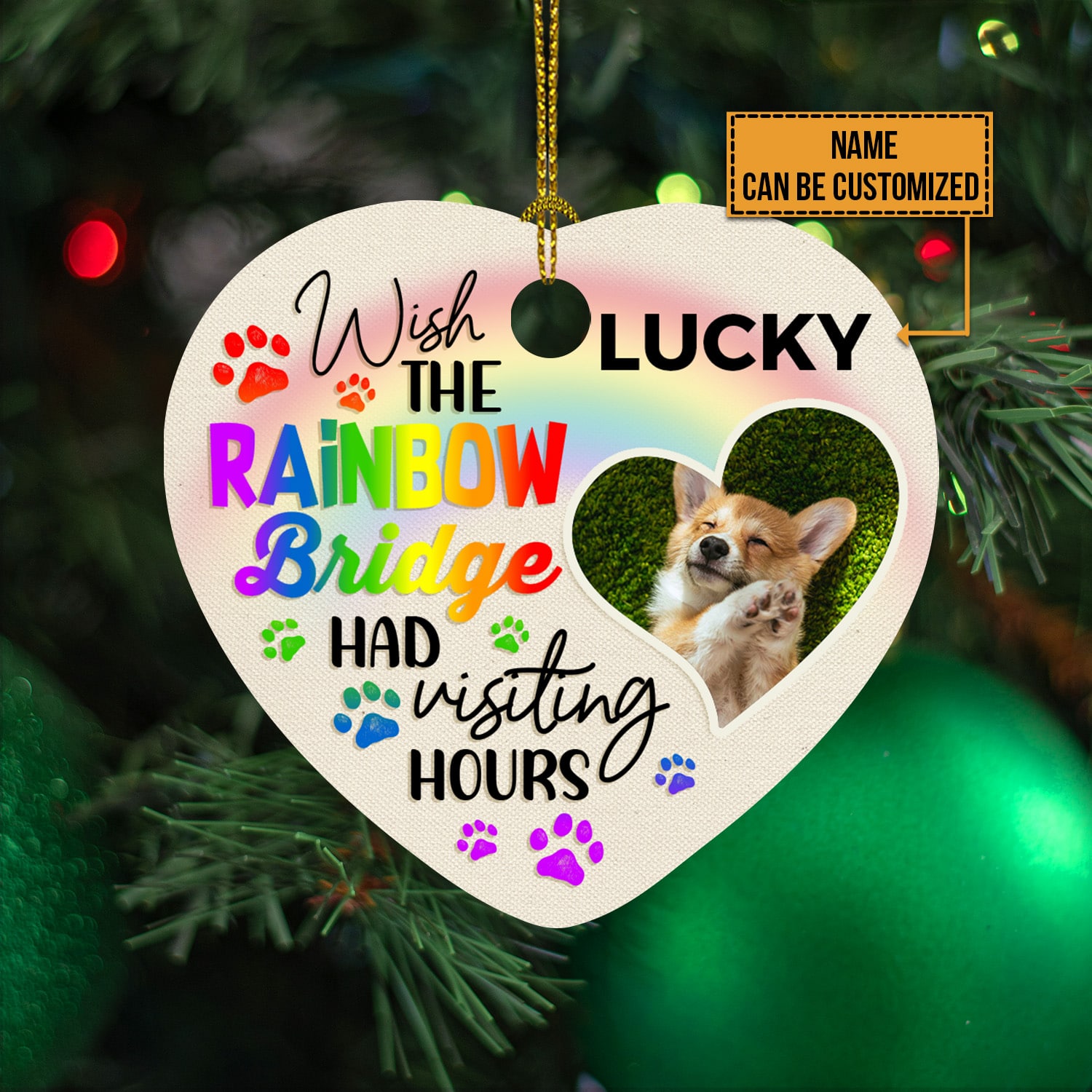 Let’s Shop Wish The Rainbow Bridge Had Visting Hours Personalized Photo Decorative Christmas Ornament – Holiday Flat Heart Ornament!
