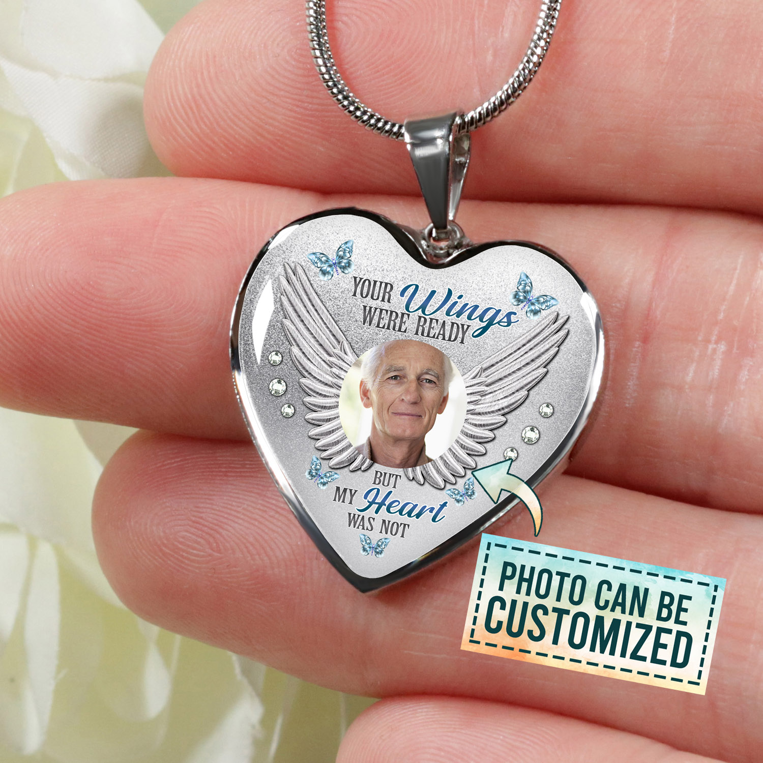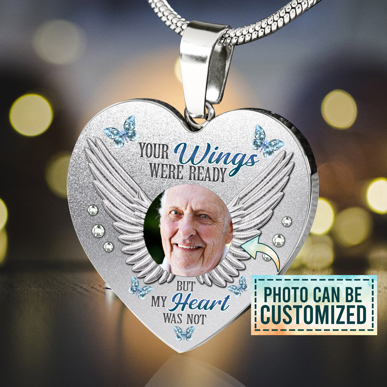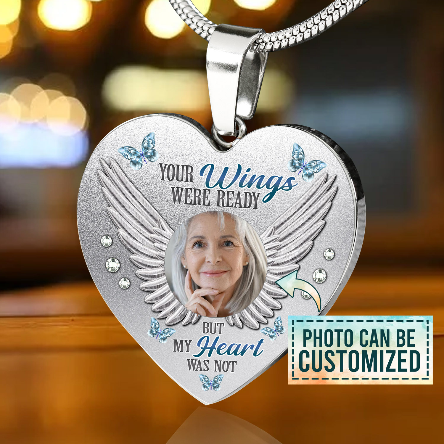 Let’s Shop Personalized Photo Your Wings Were Ready But My Heart Was Not Heart Pendant Necklace – Bangle!