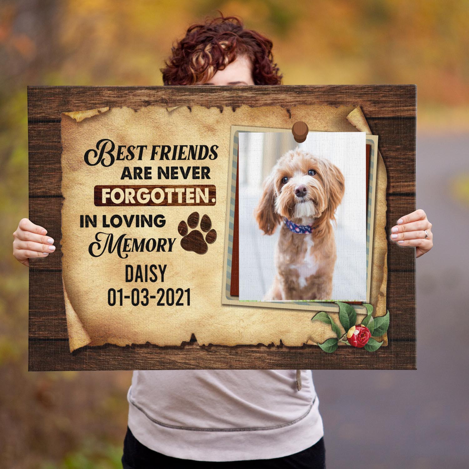 Let’s Shop Personalized Photo Best Friends Are Never Forgotten In Loving Memory Pet Memorial Framed Canvas – Unframed Poster!