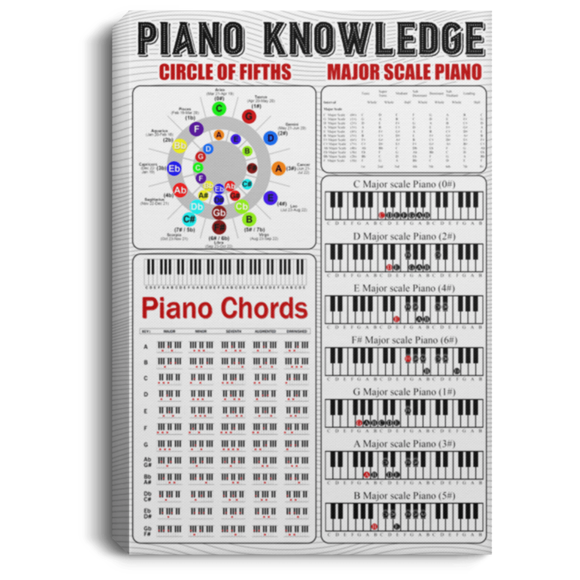 Piano Knowledge Instruction Circle Of Fifths Horoscopes Unframed Poster – Framed Canvas