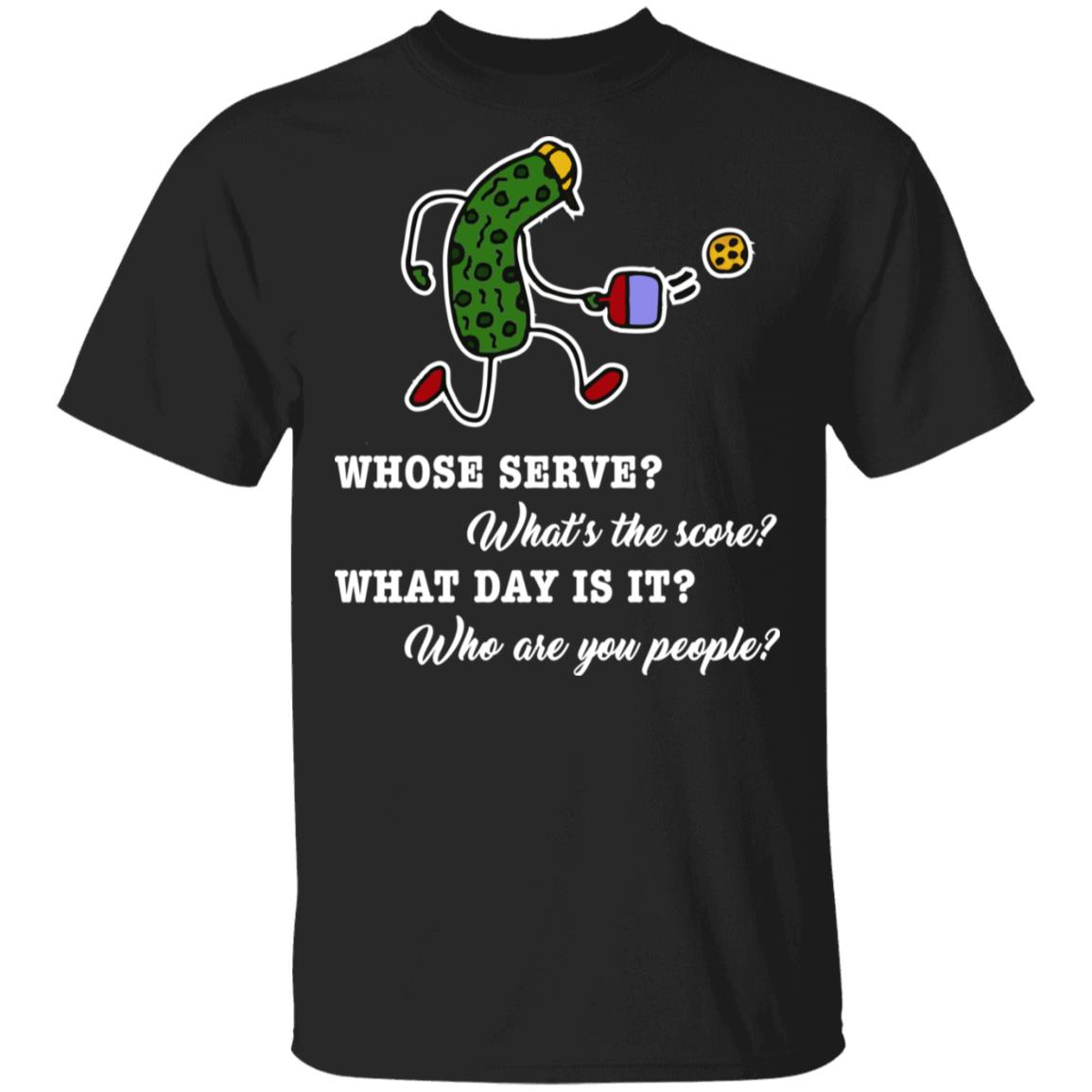 Pickleball Funny T-Shirt: Whose Serve? What's The Score? What Day? Who are You People?