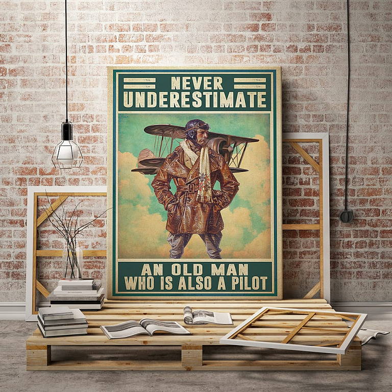 Let’s Shop Never Underestimate an Old Man Who Is Also a Pilot Gallery Wrapped Framed Canvas Prints – Unframed Poster!