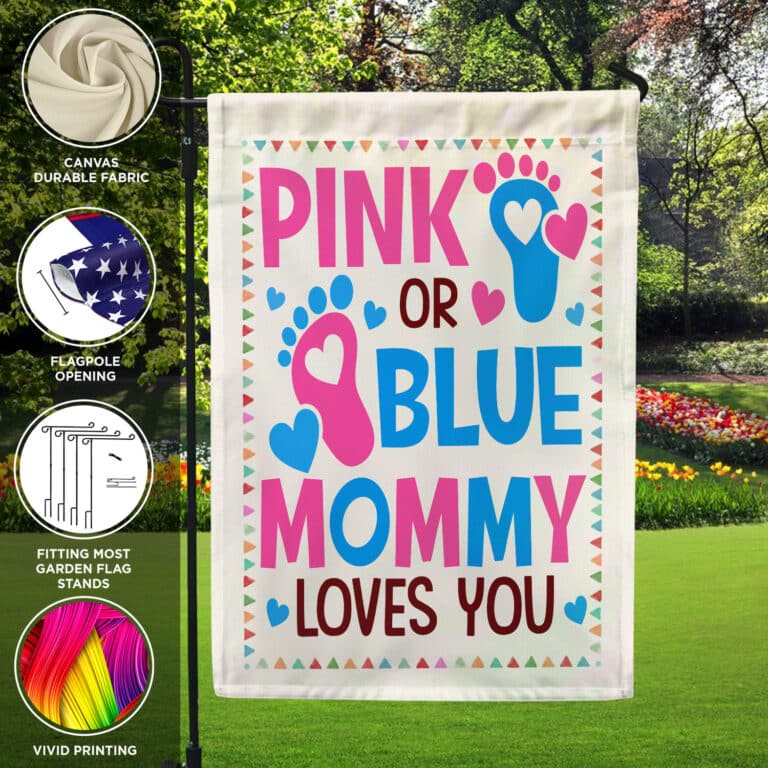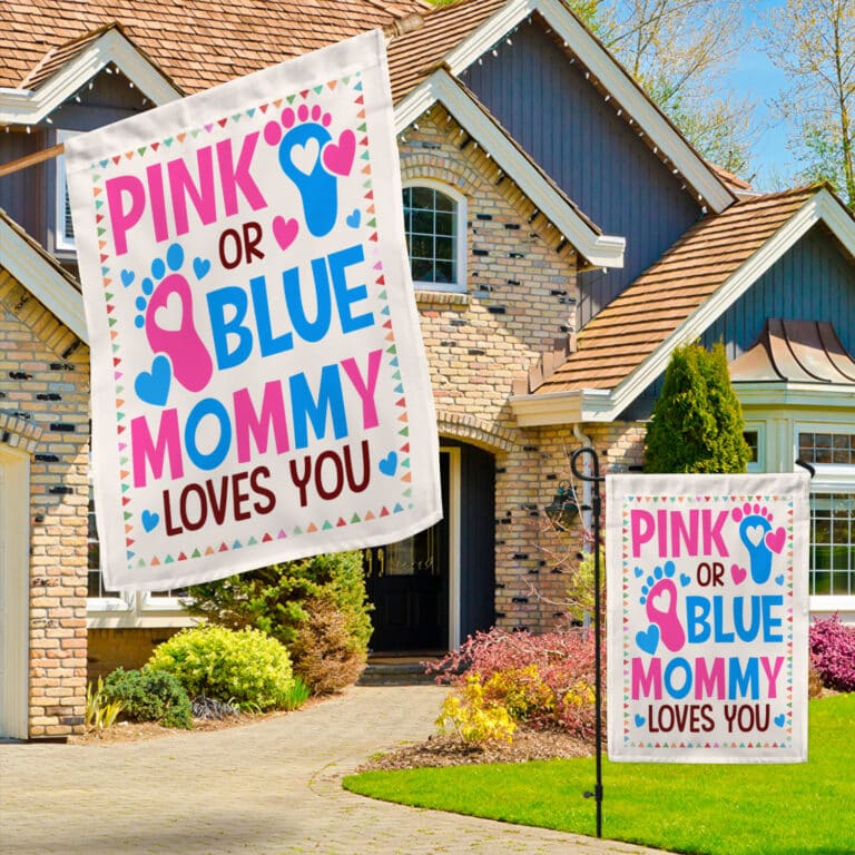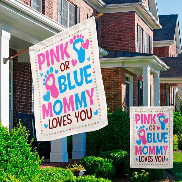 Let’s Shop Pink Or Blue Mommy Loves You Baby Gender Reveal Party Shower Flag – Garden Flag!