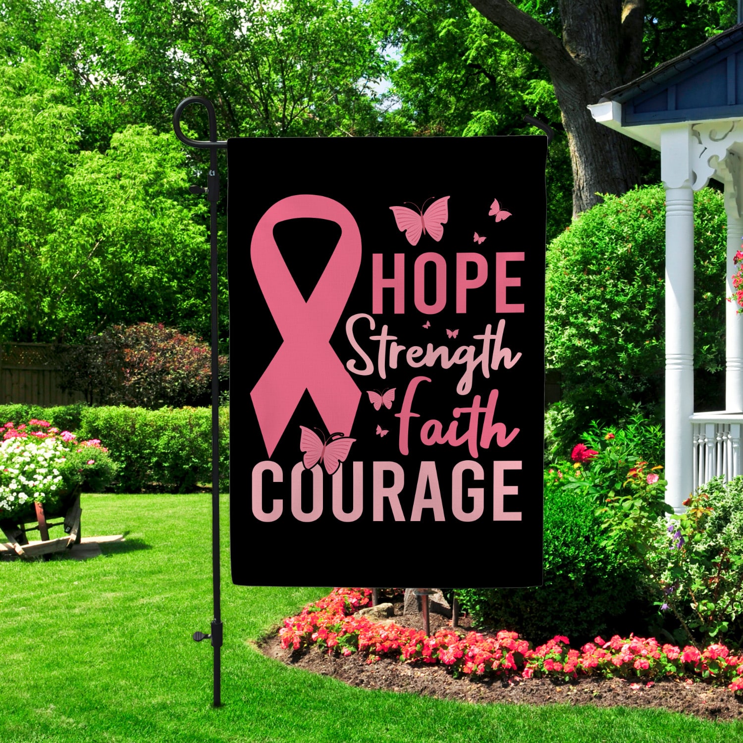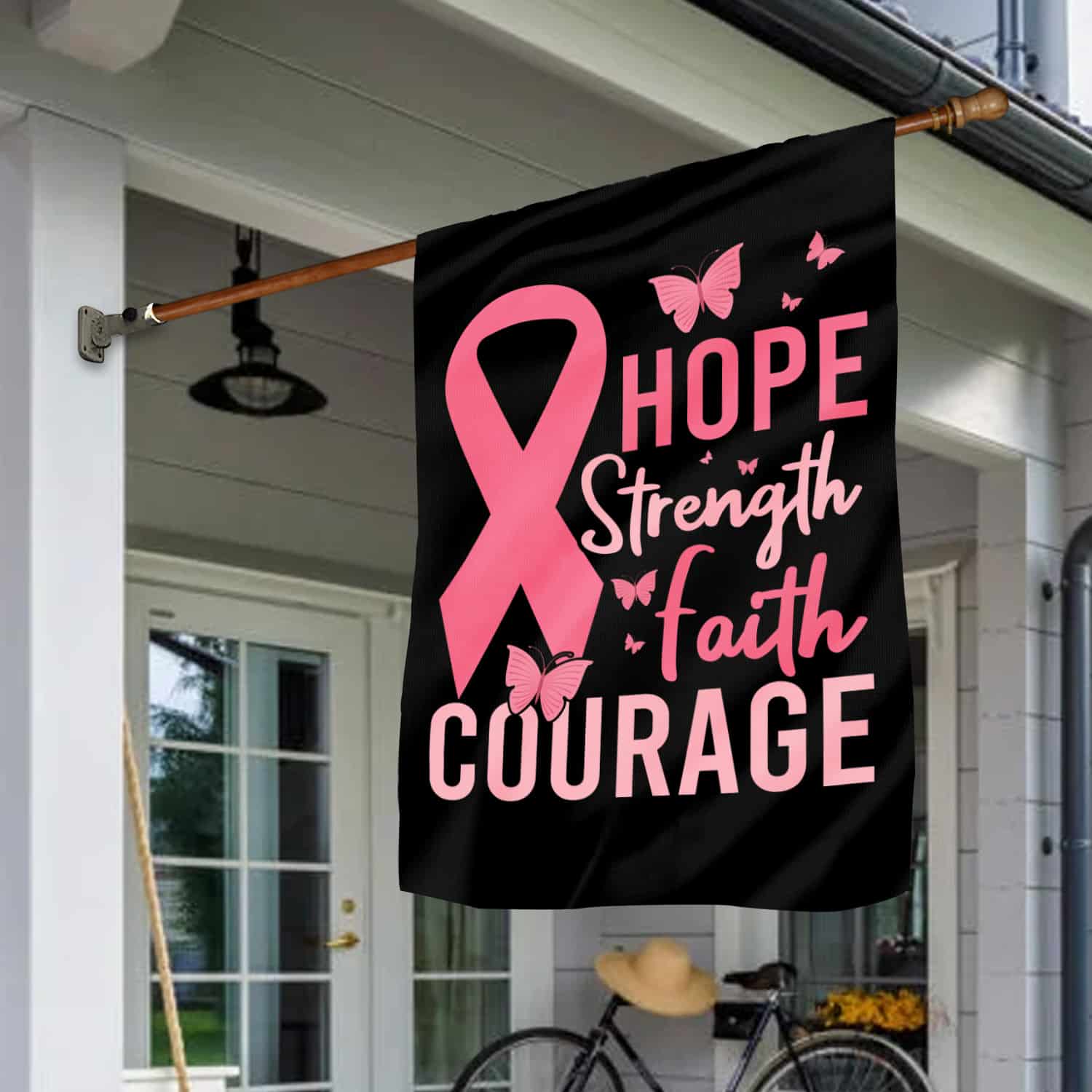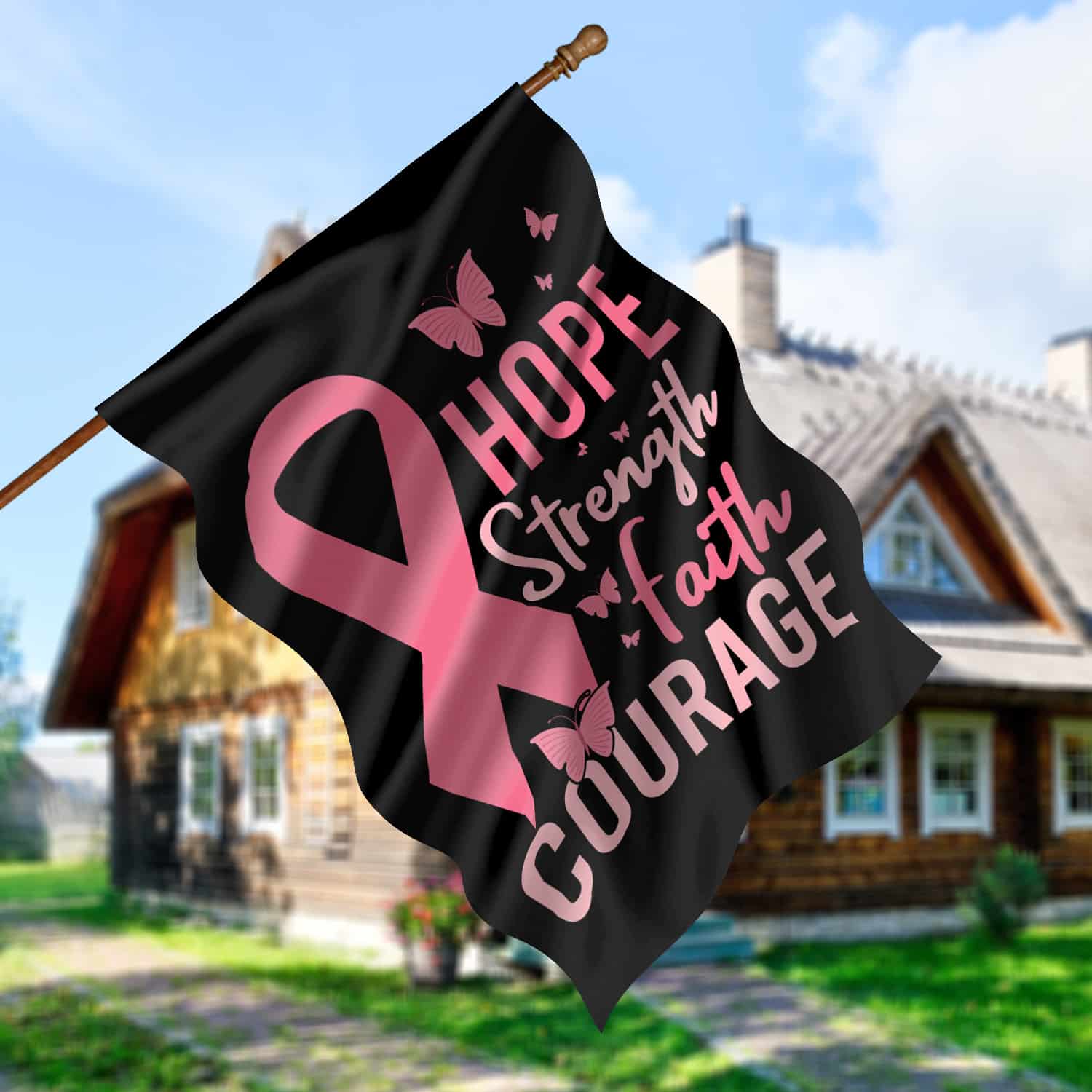Let’s Shop Pink Ribbon Hope Strength Faith Courage Breast Cancer Flag – Pink Butterfly Breast Cancer Outdoor Flag!