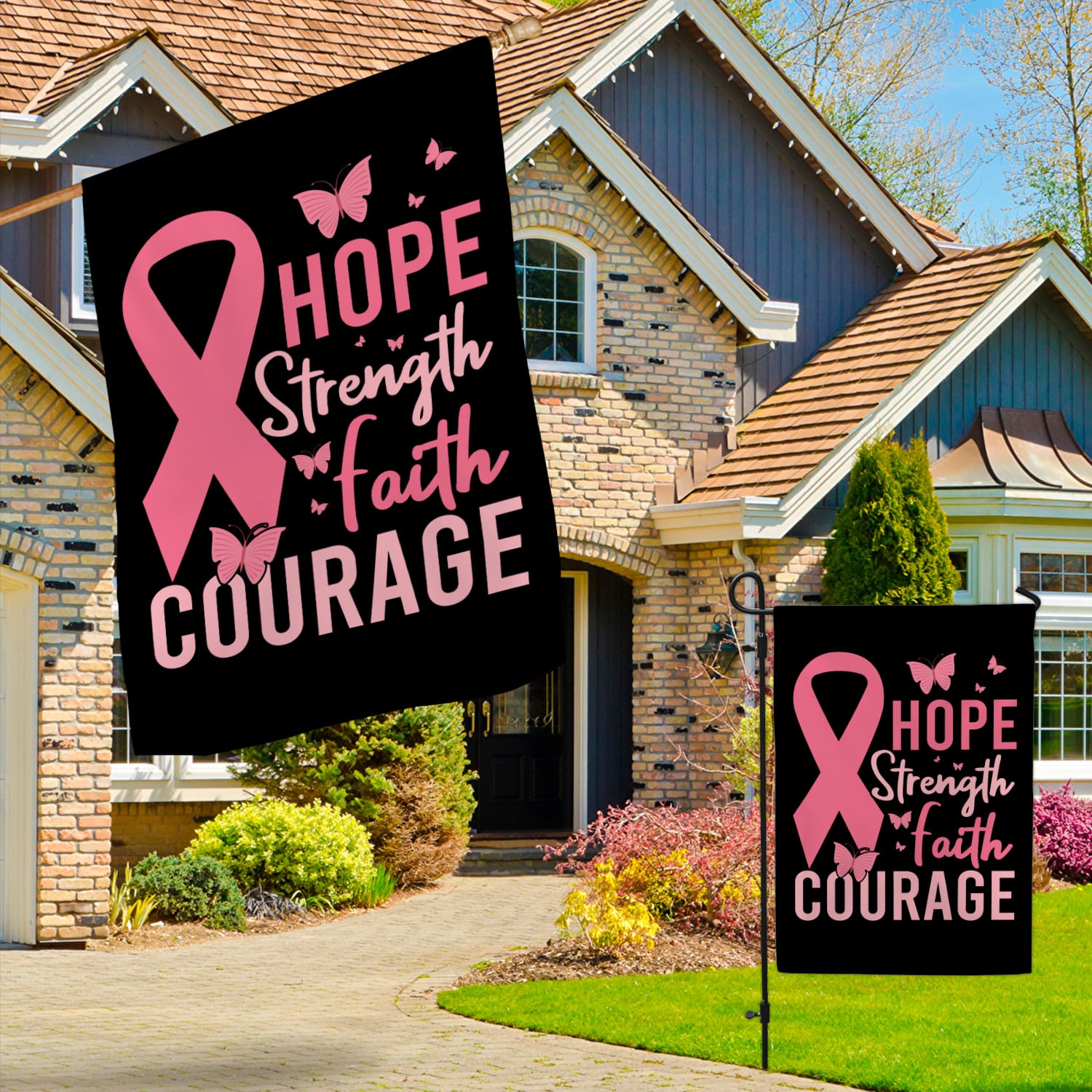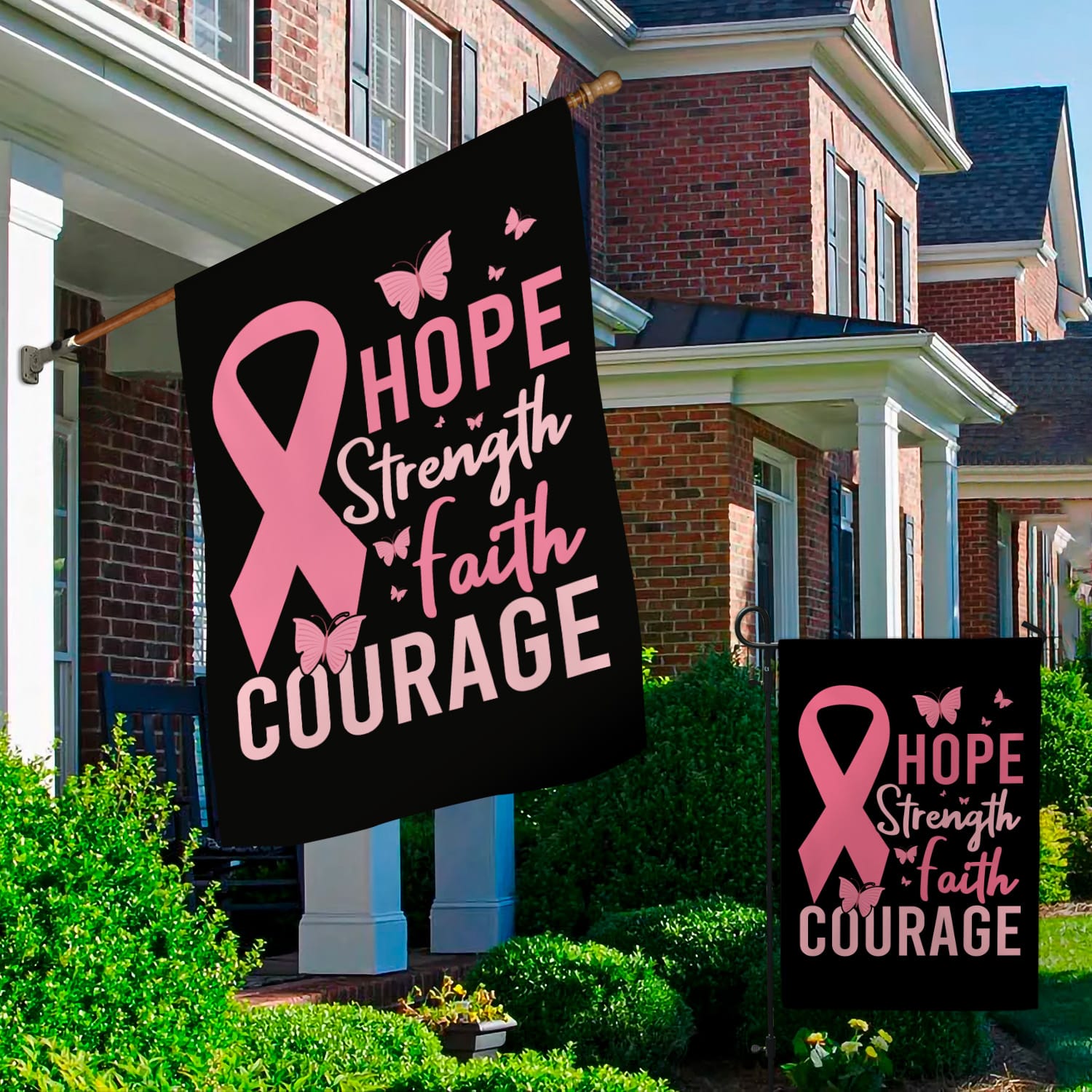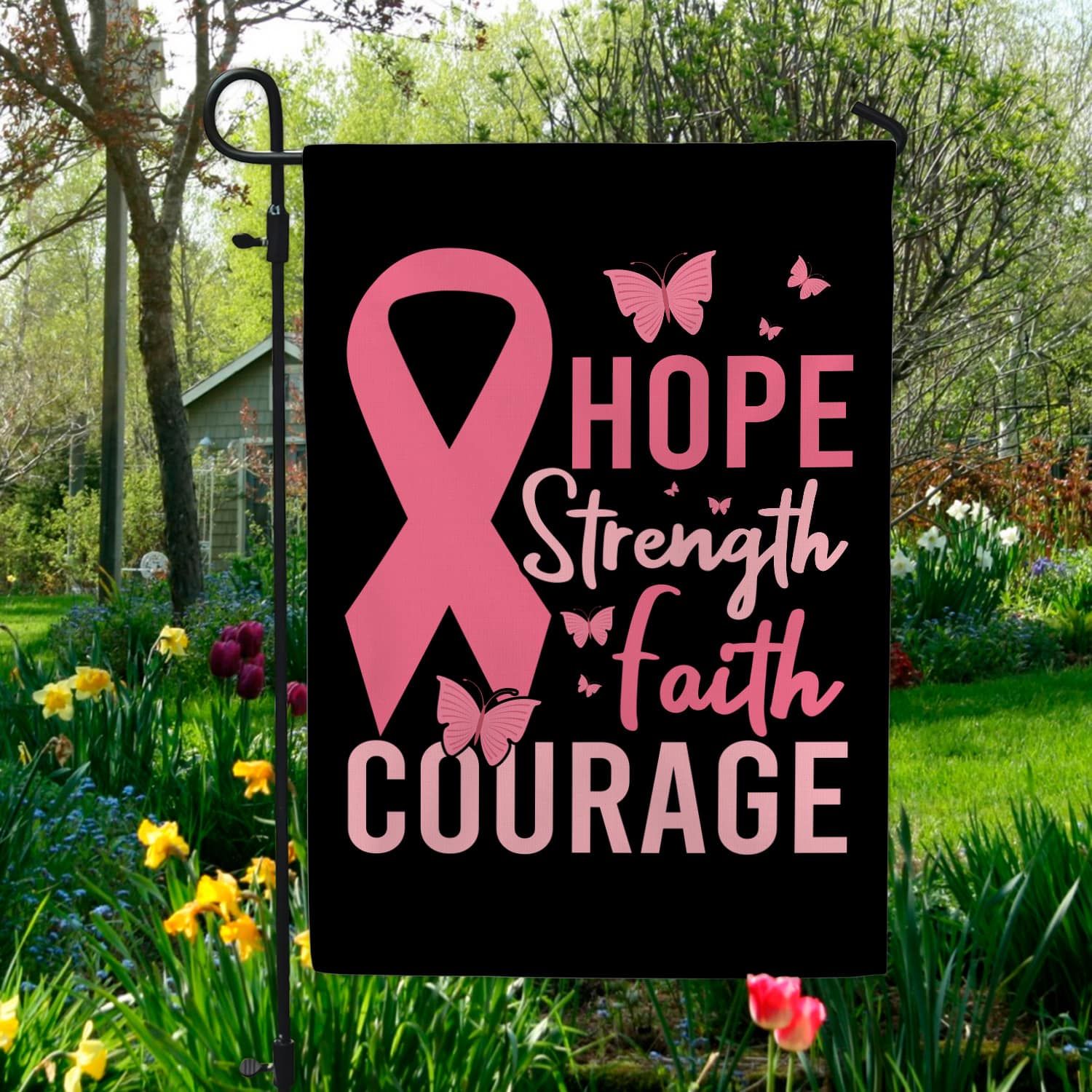 Let’s Shop Pink Ribbon Hope Strength Faith Courage Breast Cancer Flag – Pink Butterfly Breast Cancer Outdoor Flag!