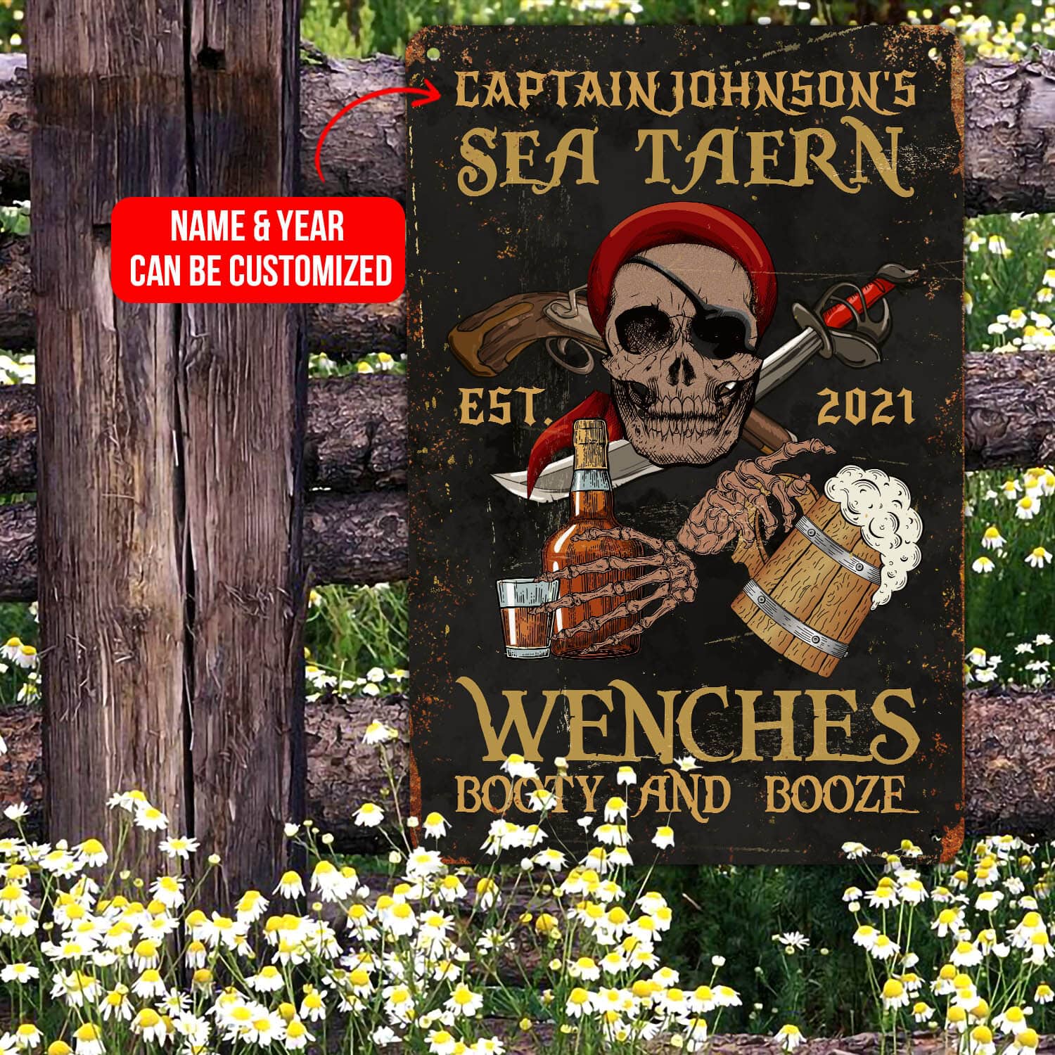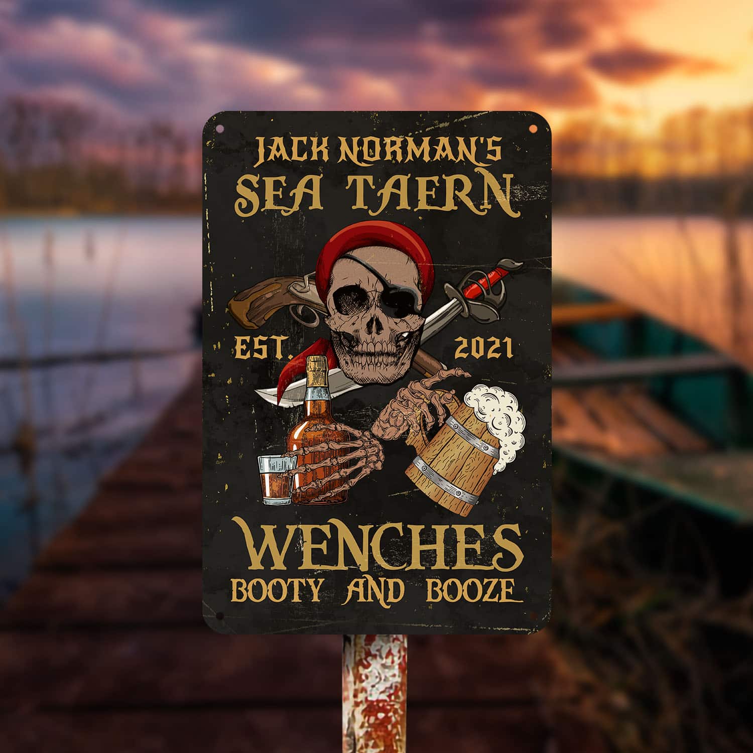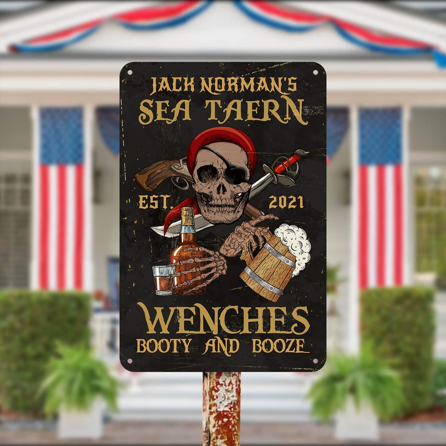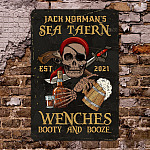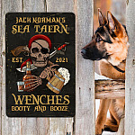 Let’s Shop Personalized Name Sea Tavern Est 2021 Wenches Booty And Booze Decorative Vintage Metal Sign!