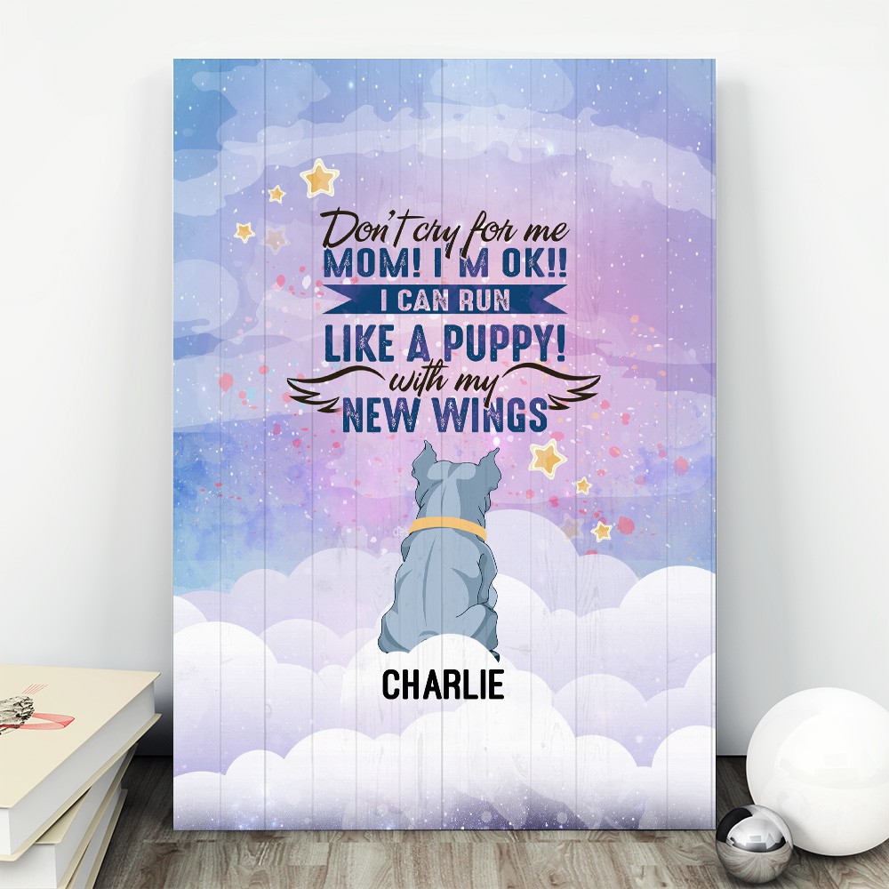 Shop Personalized Don’t Cry for Me Mom I’m Ok I Can Fly with New Wings Pitbull Framed Canvas – Unframed Poster.