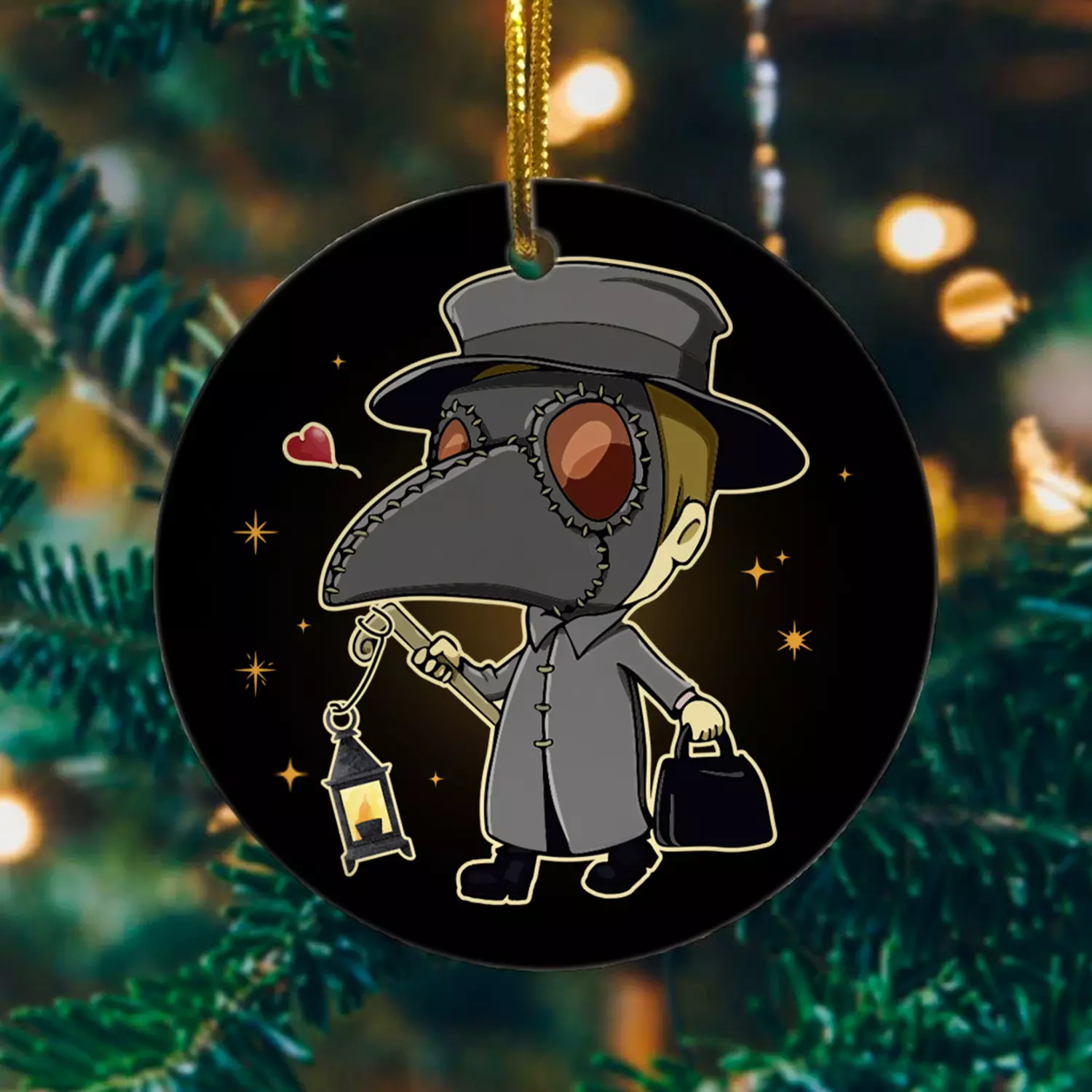 Let’s Shop Cute Plague Doctor With Lantern Decorative Christmas Ornament – Holiday Flat Circle Ornament!