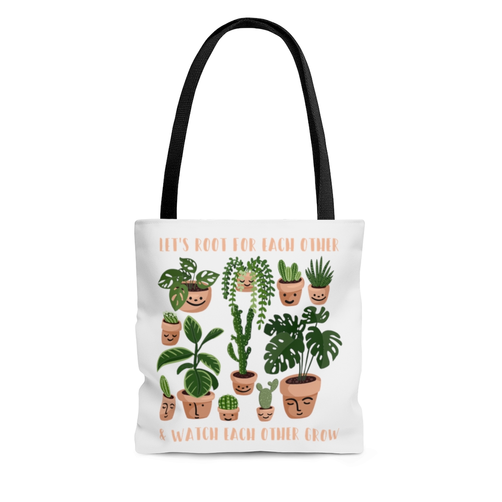 Let’s Shop Let’s Root For Each Other And Watch Each Other Grow Print Tote Bag – Shoulder Bag – Reusable Shopping Bag!