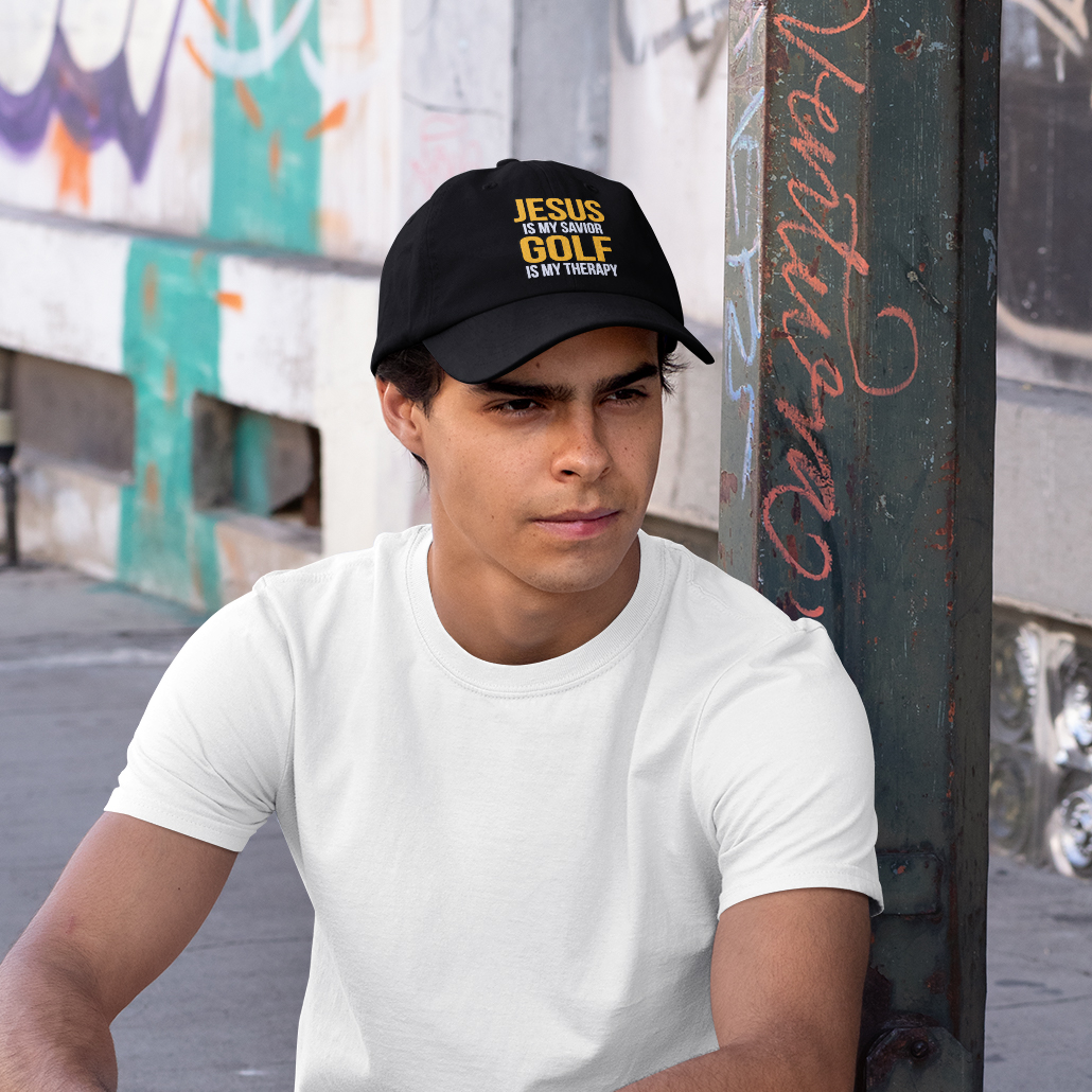 Let’s Shop Jesus Is My Savior Golf Is My Therapy Gifts Golf Lover Twill Cap – High-Profile Snapback Hat – Trucker Hat!