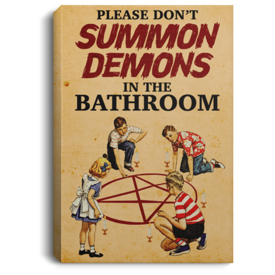 Please Don’t Summon Demons In The Bathroom Funny Framed Canvas – Unframed Poster