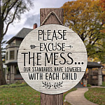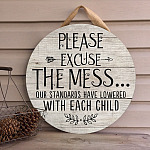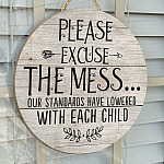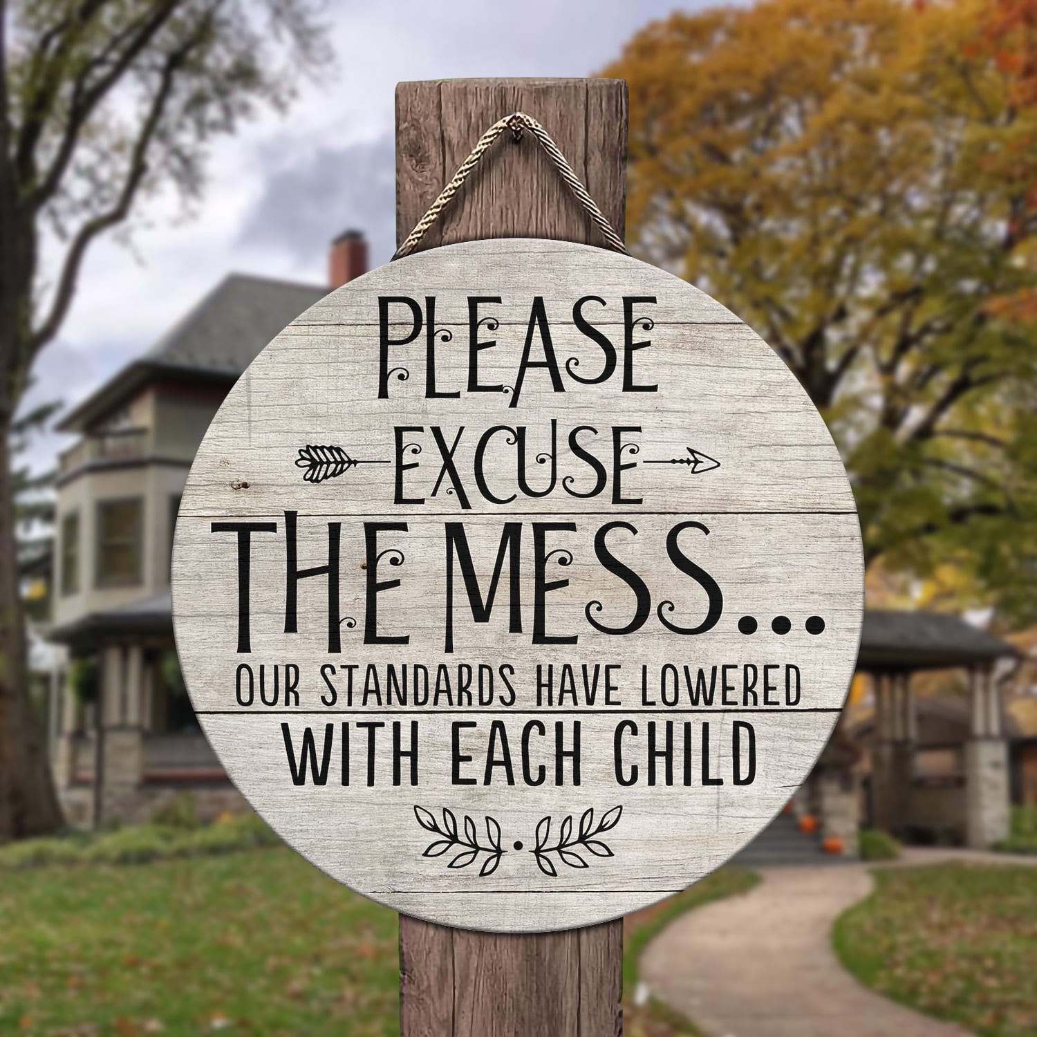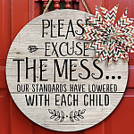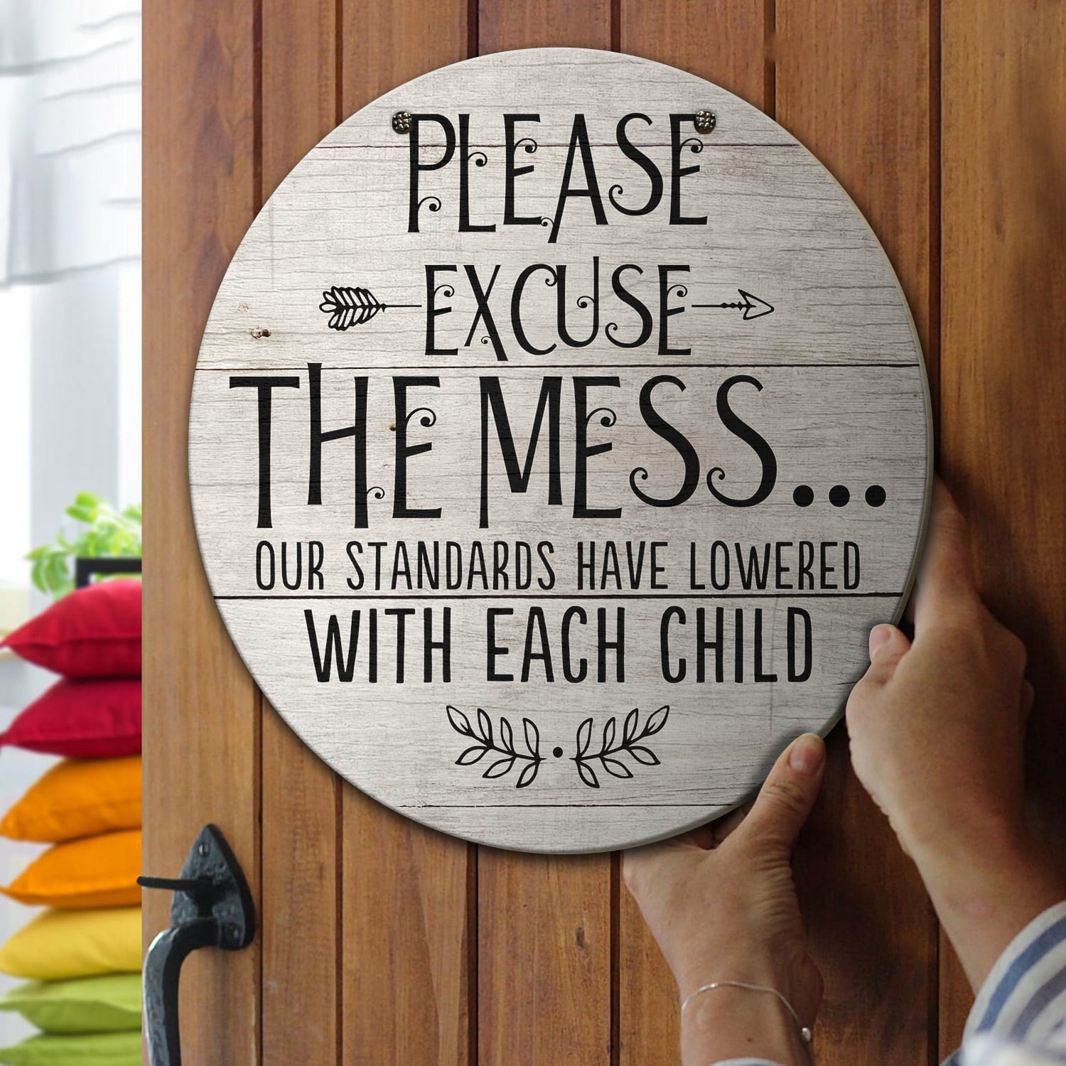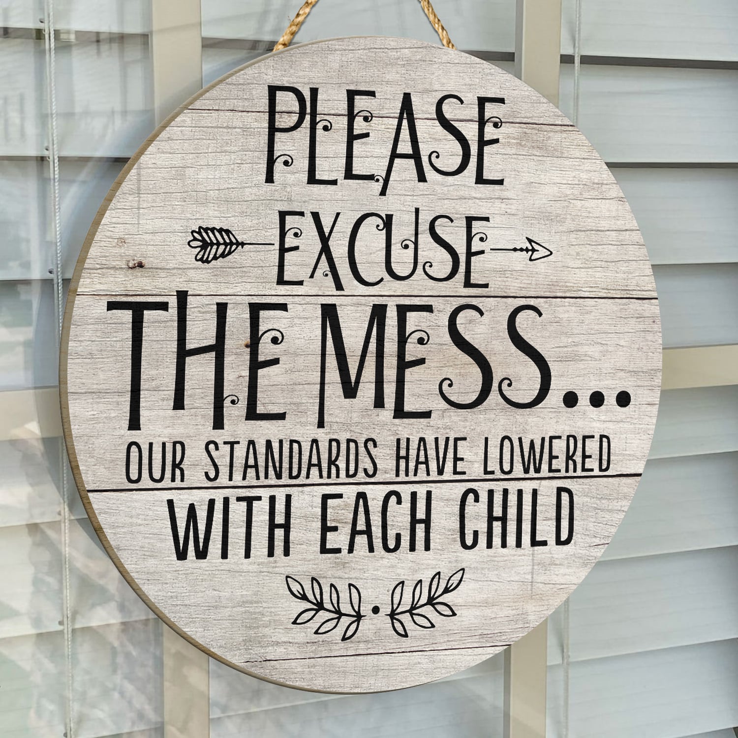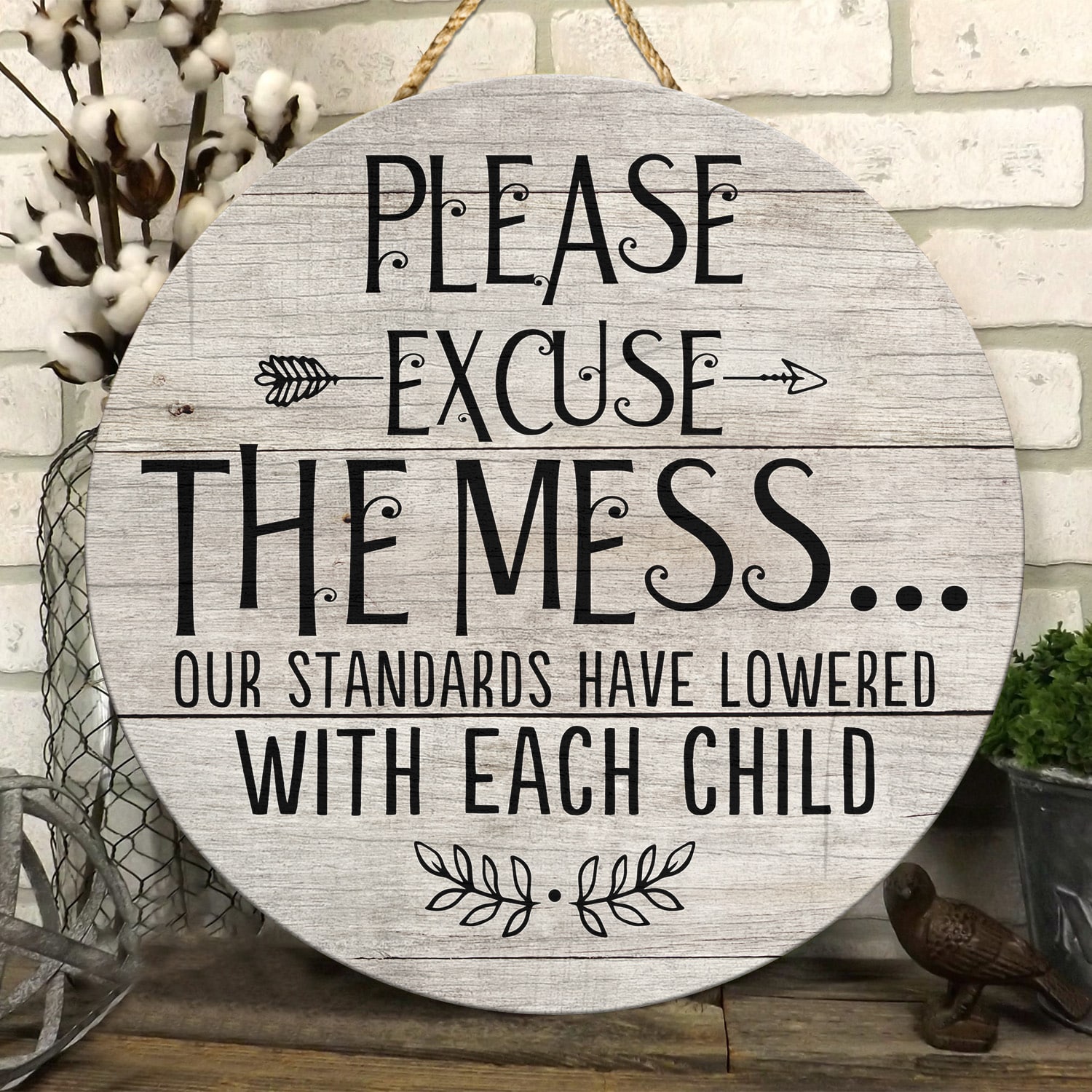Let’s Shop Please Excuse the Mess Our Standard Have Lowered with Each Child Wooden Door Sign – Front Porch Sign Decor Farmhouse!