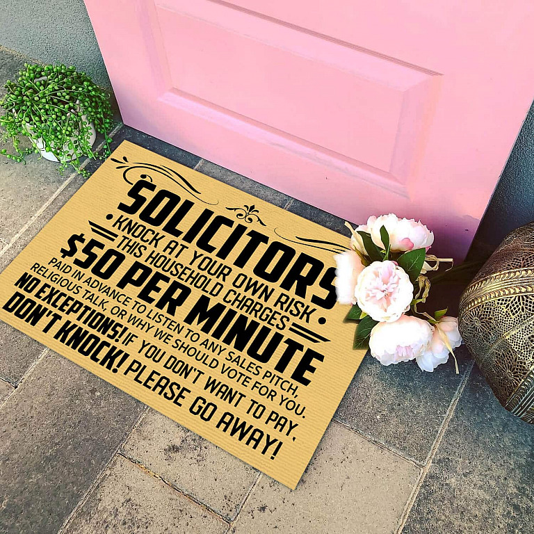 At CubeBik, besides custom doormats, we also offer tees, hoodies, sweaters, raglans, tanks, wall arts, canvases, posters, mugs, blankets, engraved jewelry, personalized necklaces, printed face masks, throw pillows, flags, tote bags, hats, accessories and more on our website, so do not miss our other Solicitors Knock at Your Own Risk, Solicitors Sign, Solicitors Not Welcome, Solicitors Knock at Your Own Risk Signs, Solicitors Charge Sign, Solicitors Go Away, Solicitors Charge Doormat, Please Go Away Doormat, Solicitor Door Sign related merchandise. Moreover, all the products are made-to-order and one of a kind custom designs you can’t get elsewhere in normal stores. Let’s discover CubeBik.com now and find your favorite personalized items. We can’t wait to surprise and build beautiful memories with you and your loved ones.