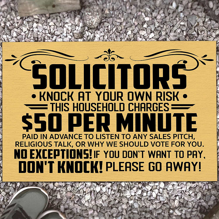 Are you spending too much time to find creative merchandise for you or suitable & special gifts for your mommy, your daddy, your son, your daughter, your children, your friends or someone you love? The struggle is over because we have various Solicitors Knock at Your Own Risk, Solicitors Sign, Solicitors Not Welcome, Solicitors Knock at Your Own Risk Signs, Solicitors Charge Sign, Solicitors Go Away, Solicitors Charge Doormat, Please Go Away Doormat, Solicitor Door Sign which will make perfect presents for your beloveds. In order to make your present stand out, we have created lots of unique and awesome customized photo gifts & personalized designs.