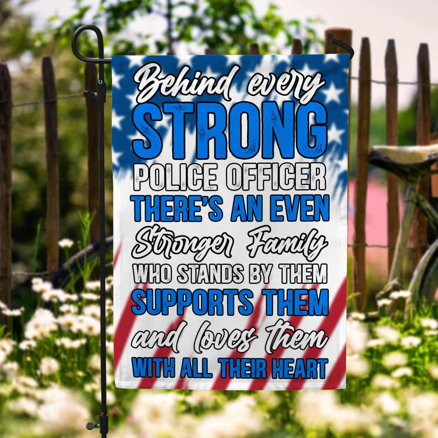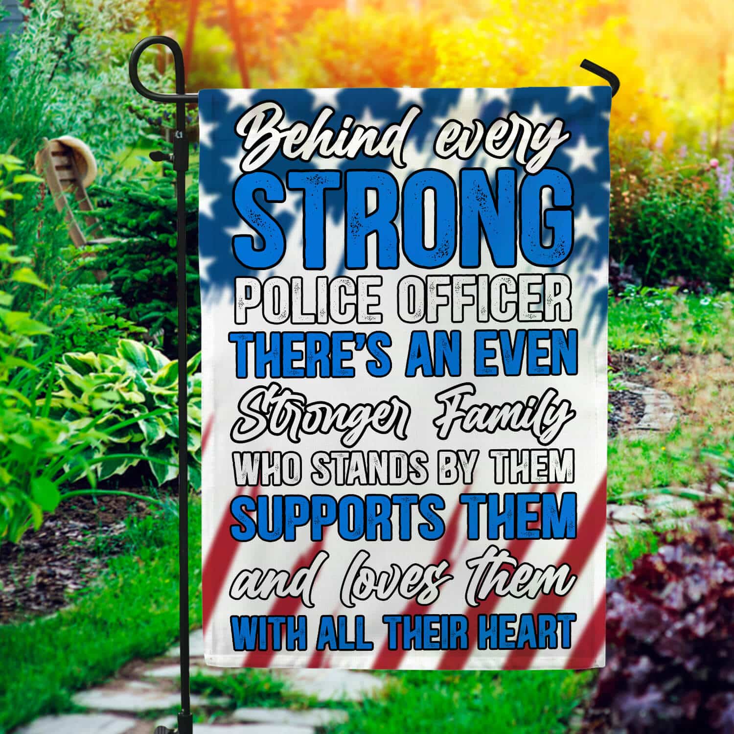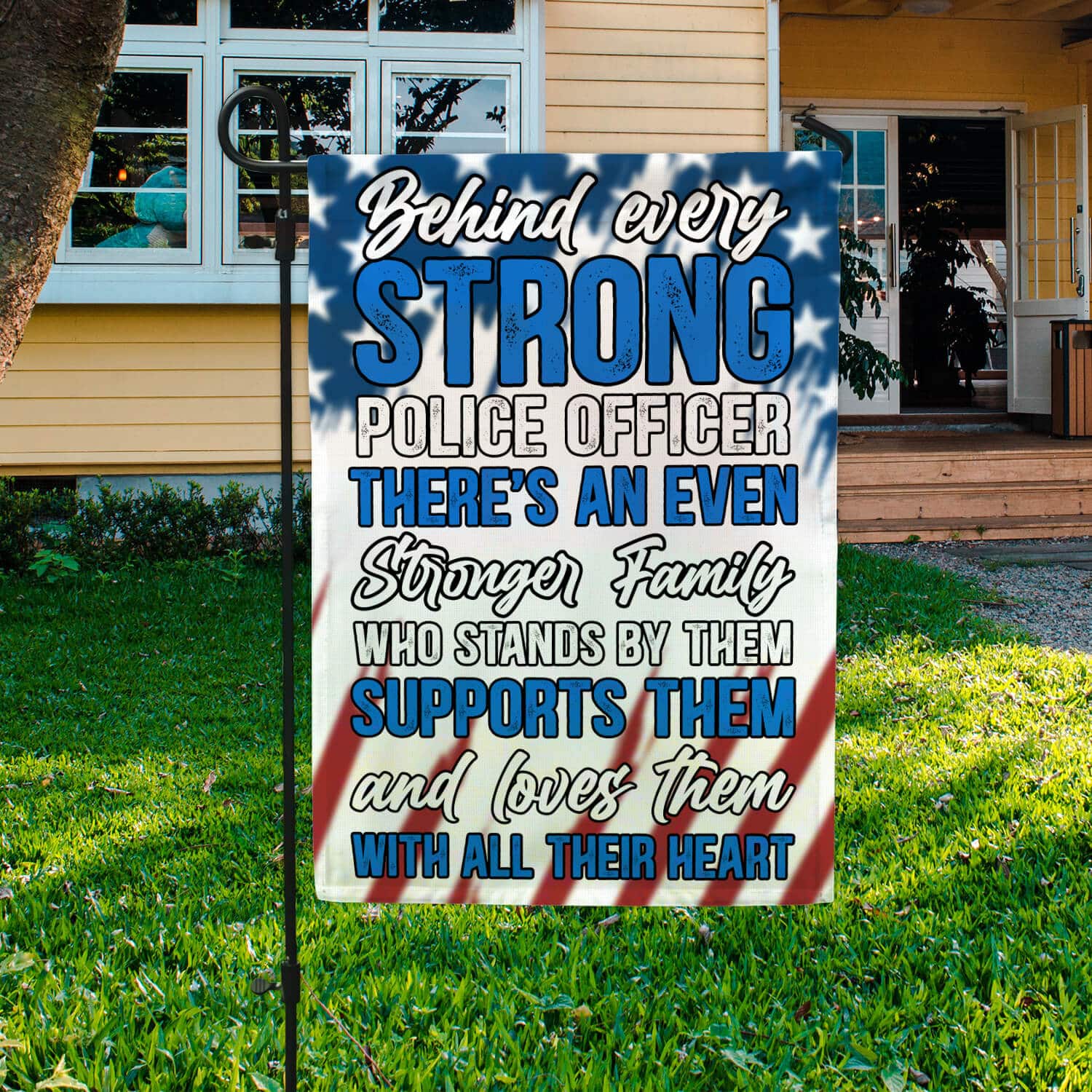 Let’s Shop Behind Every Strong Police Officer Is Family Garden Flag – Police Officer House Flag – Wall Flag!