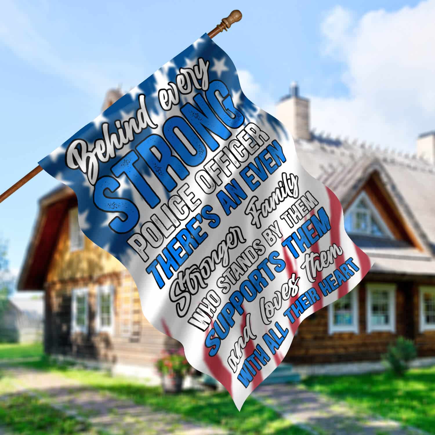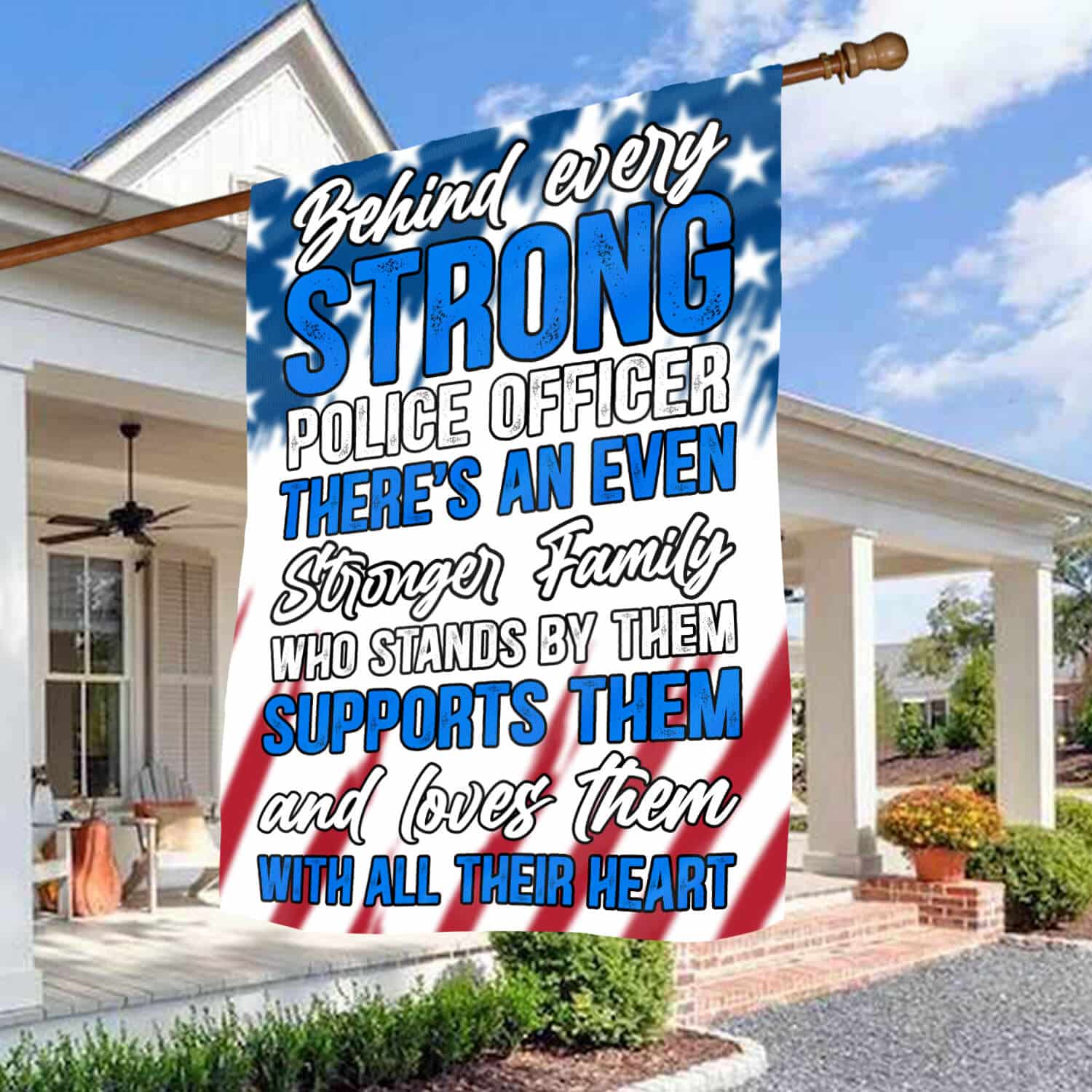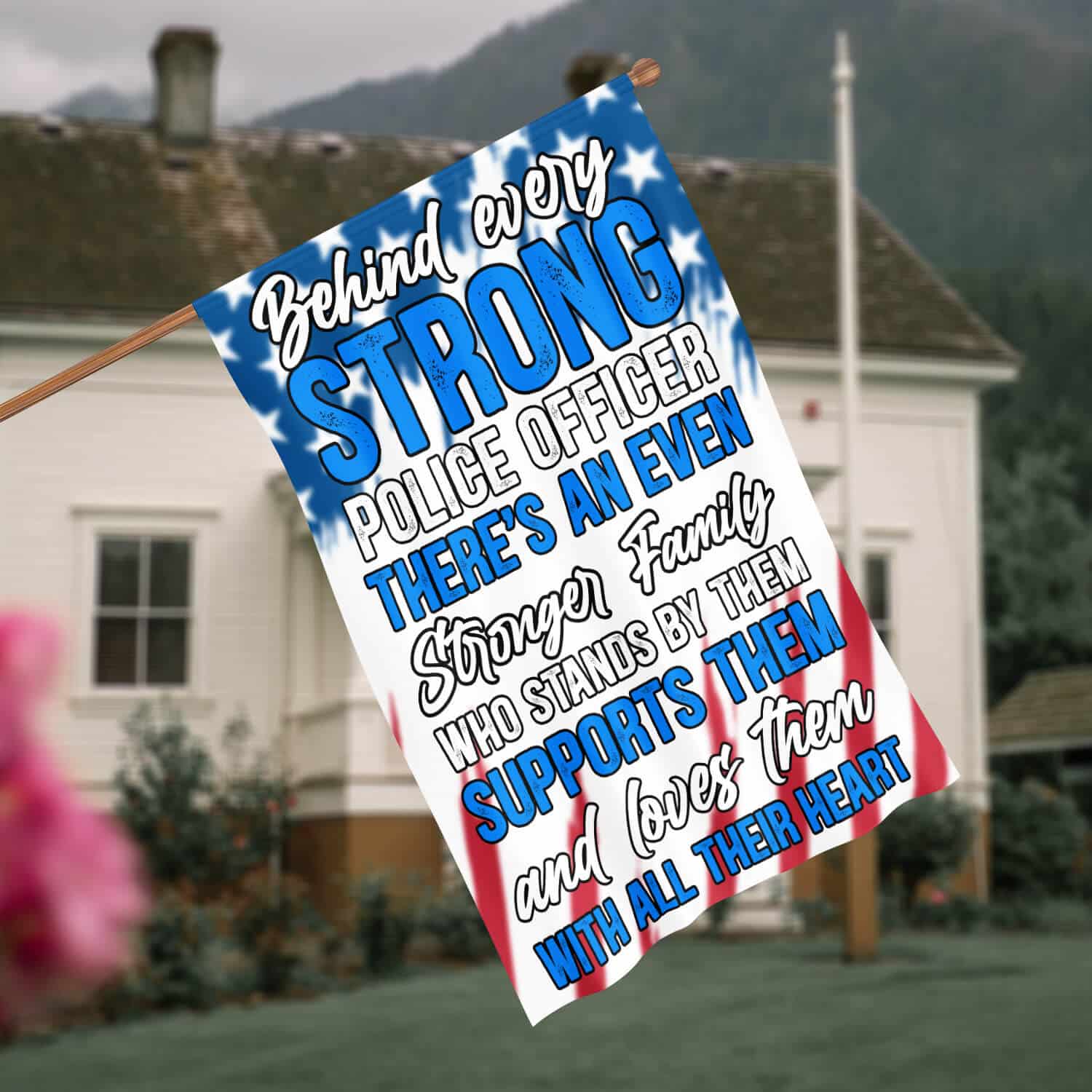 Let’s Shop Behind Every Strong Police Officer Is Family Garden Flag – Police Officer House Flag – Wall Flag!