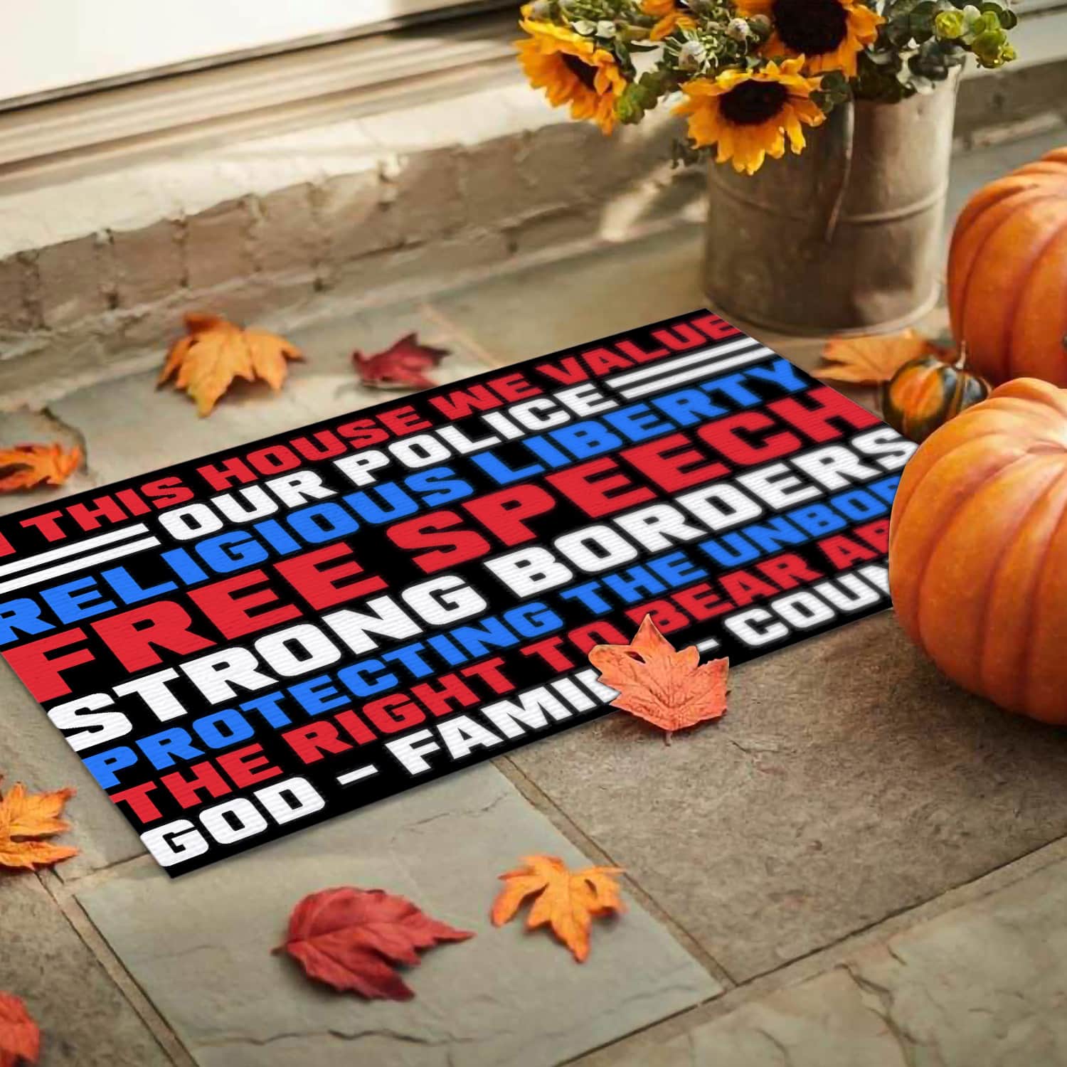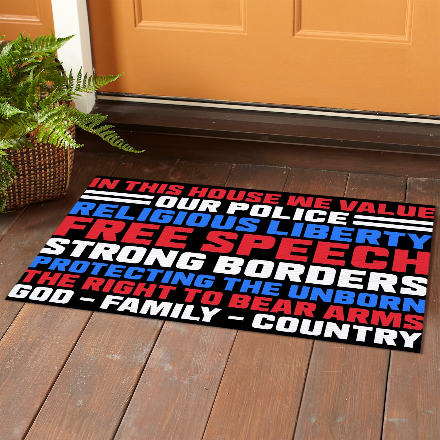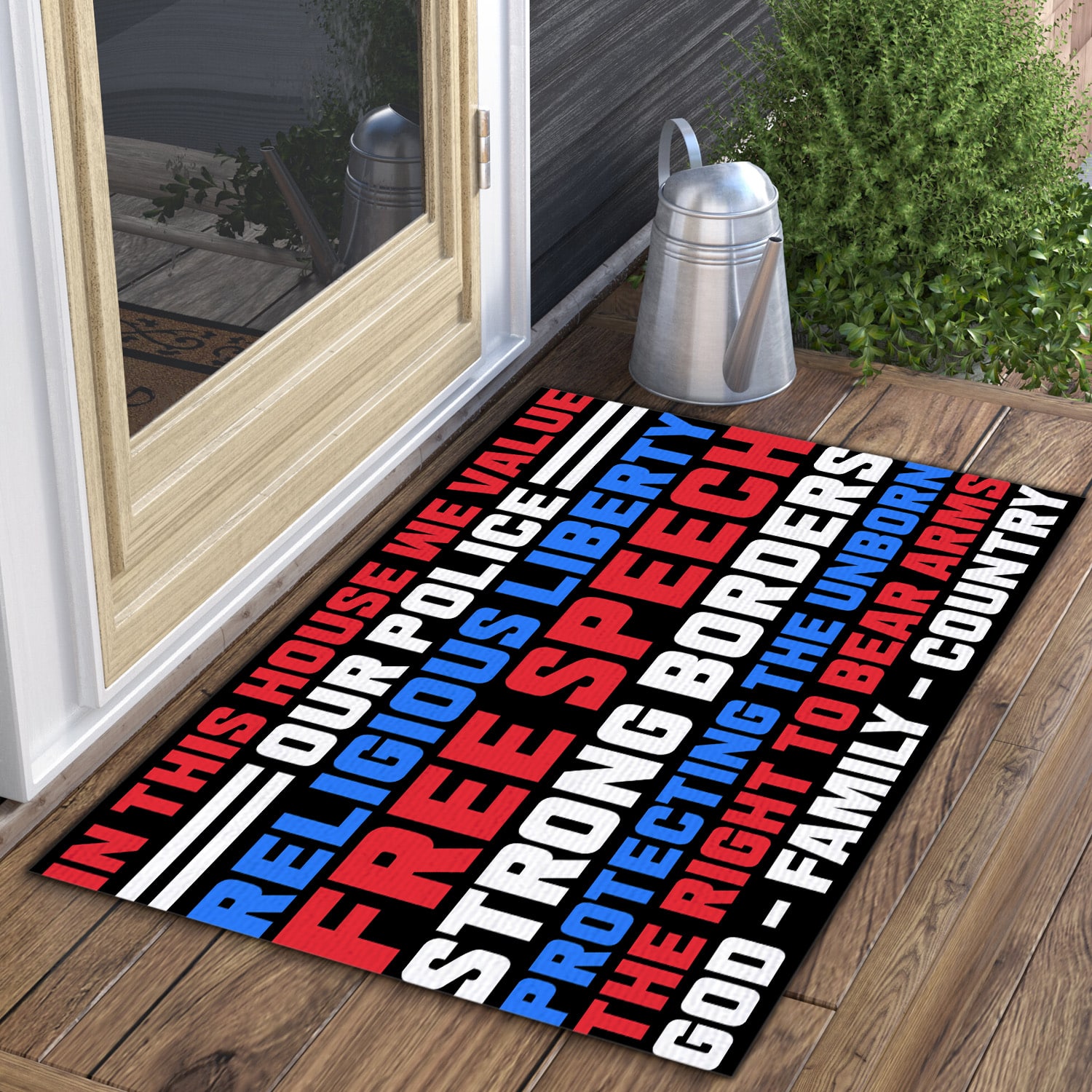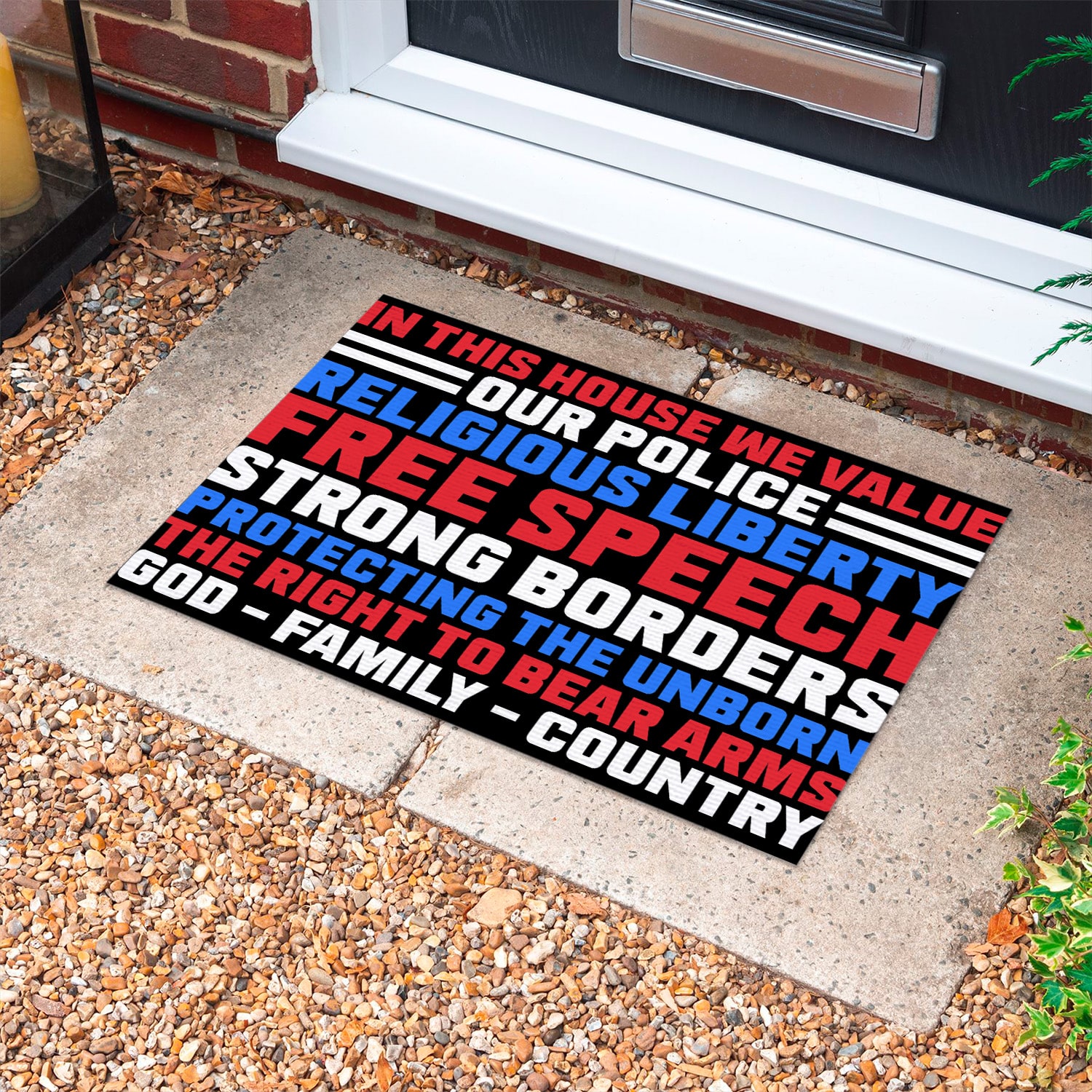 Let’s Shop In This House We Value Our Police Religious Liberty God Family Country House Doormat – Outdoor Indoor Doormat!