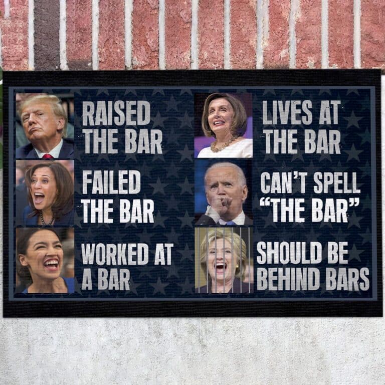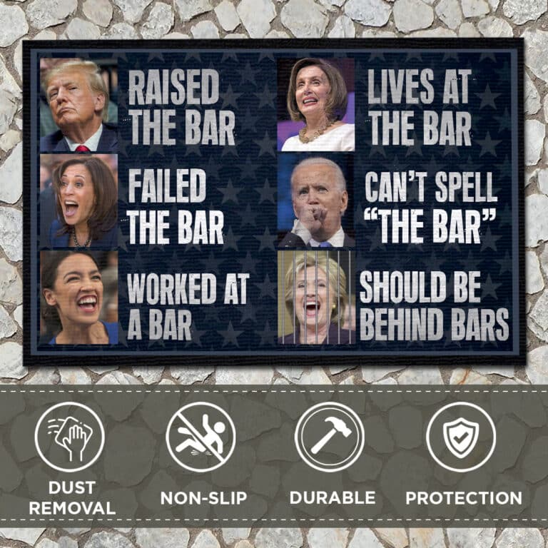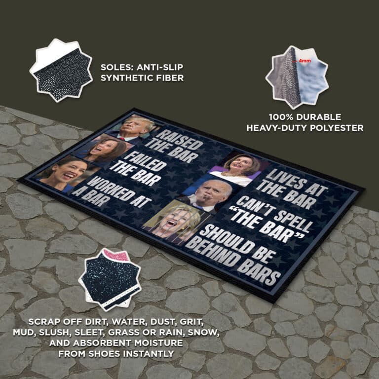 At CubeBik, besides custom doormats, we also offer tees, hoodies, sweaters, raglans, tanks, wall arts, canvases, posters, mugs, blankets, engraved jewelry, personalized necklaces, printed face masks, throw pillows, flags, tote bags, hats, accessories and more on our website, so do not miss our other Raised The Bar Failed The Bar, Trump Raised The Bar, An-ti Biden Meme, Funny Political Shirt, FJB, Republican Shirt, Patriotic Gift,An-ti Biden Doormat, Wipe Your Feet Here Doormat, Biden Brain Dead Idiot, Biden Idiot Doormat, Biden I Did That, Biden Clown Doormat, Biden Idiot Doormat, Joe Biden Rigged Election, Biden Not My President, Biden Kamala Pelosi, Rug to Wipe Feet, Wipe Your Shoes Mat related merchandise. Moreover, all the products are made-to-order and one of a kind custom designs you can’t get elsewhere in normal stores. Let’s discover CubeBik.com now and find your favorite personalized items. We can’t wait to surprise and build beautiful memories with you and your loved ones.