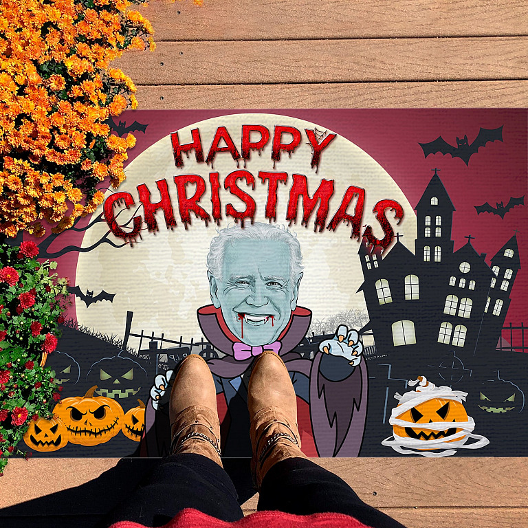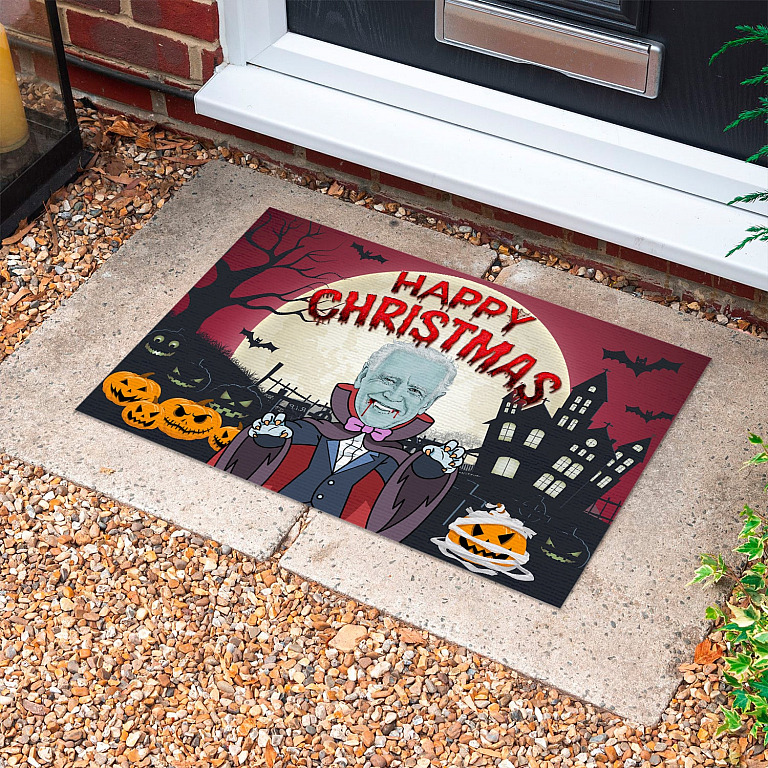 Let’s Shop Happy Christmas Halloween Jokes Pumpkin Boo Funny Joe Biden Indoor Outdoor Doormat!