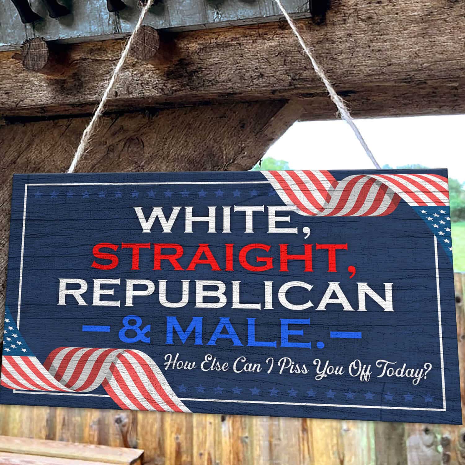 Let’s Shop White Straight Republican Male How Else Can I Piss You Off Today Decorative Wooden Door Sign – Front Porch Sign!