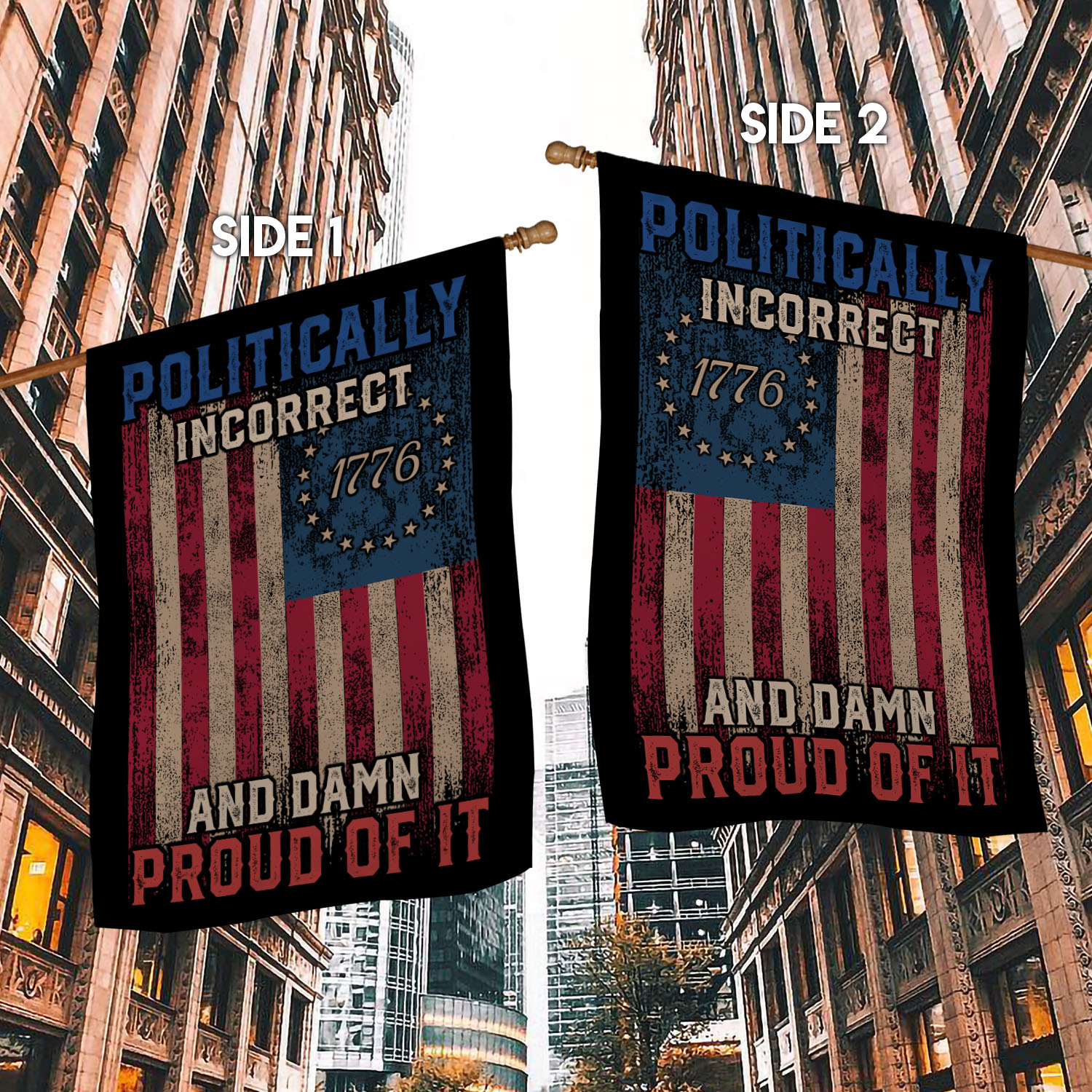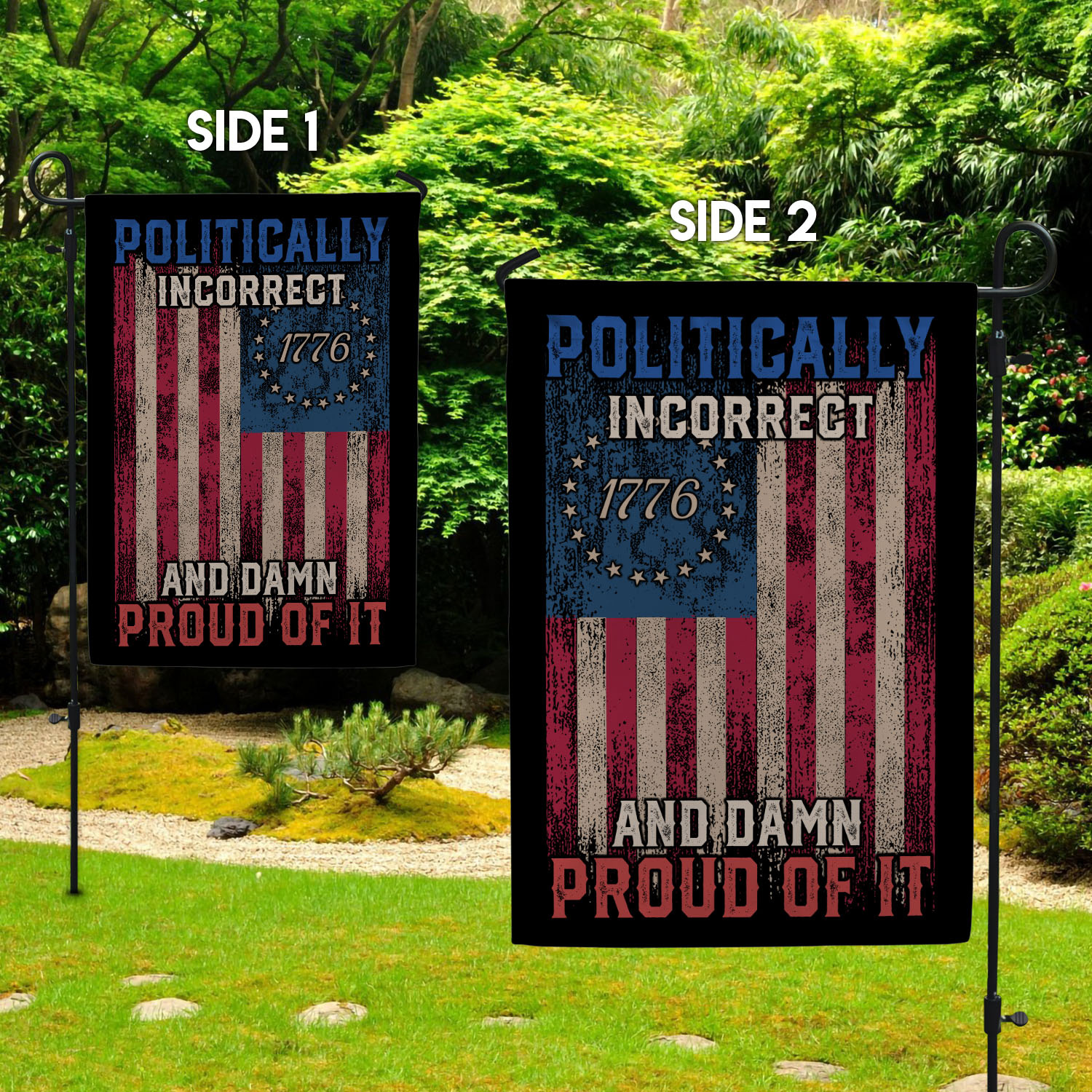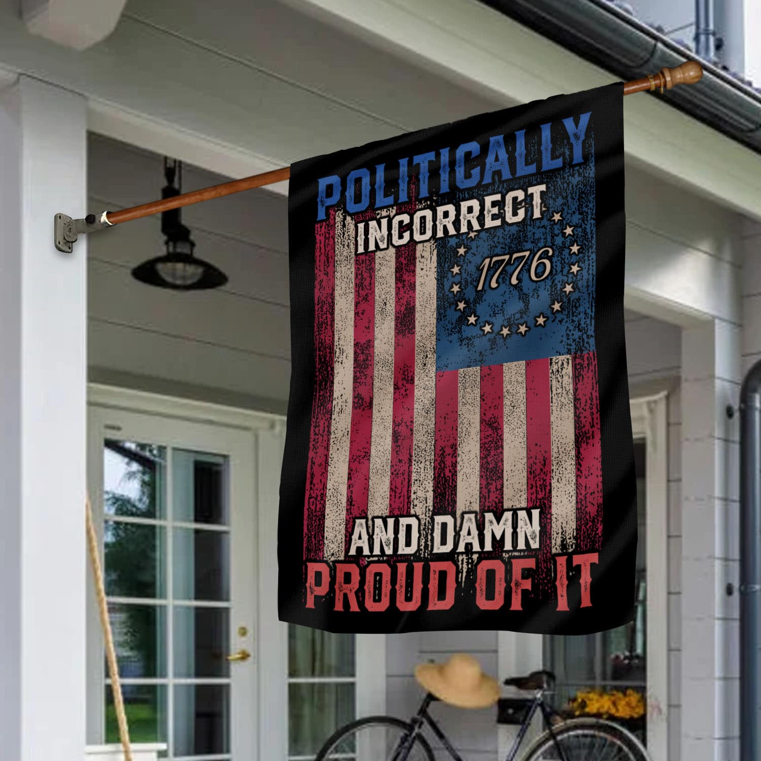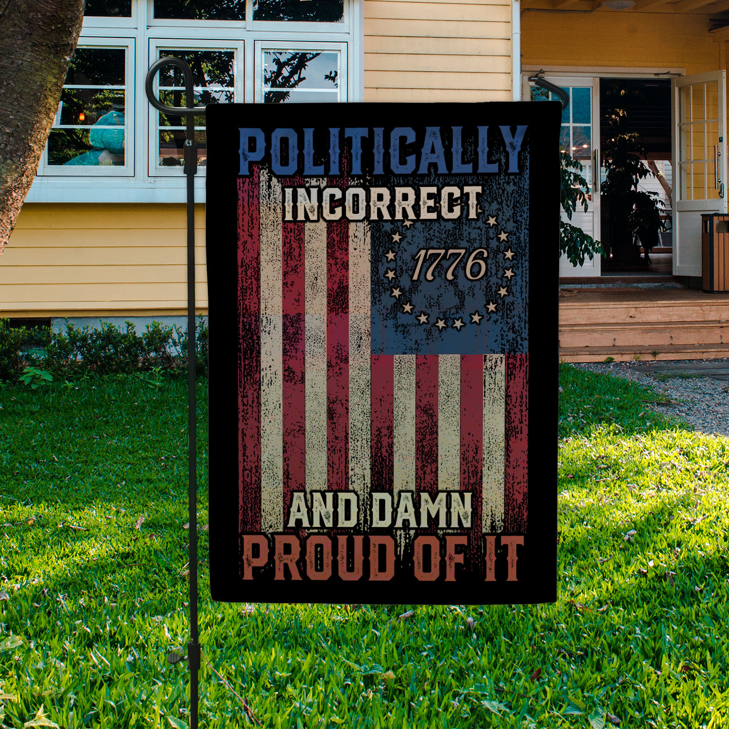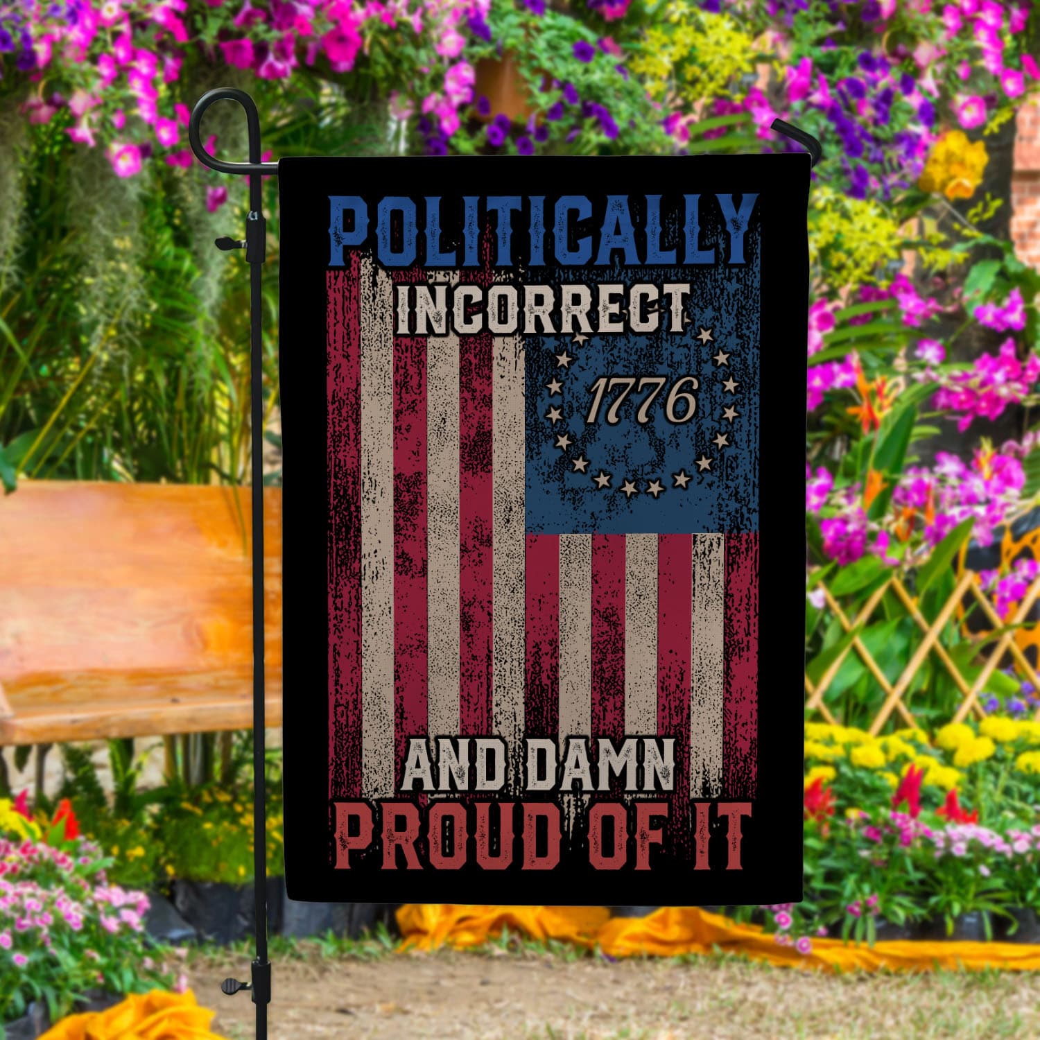 Let’s Shop Politically Incorrect And Damn Proud Of It Garden Flag – Funny Political House Flag!