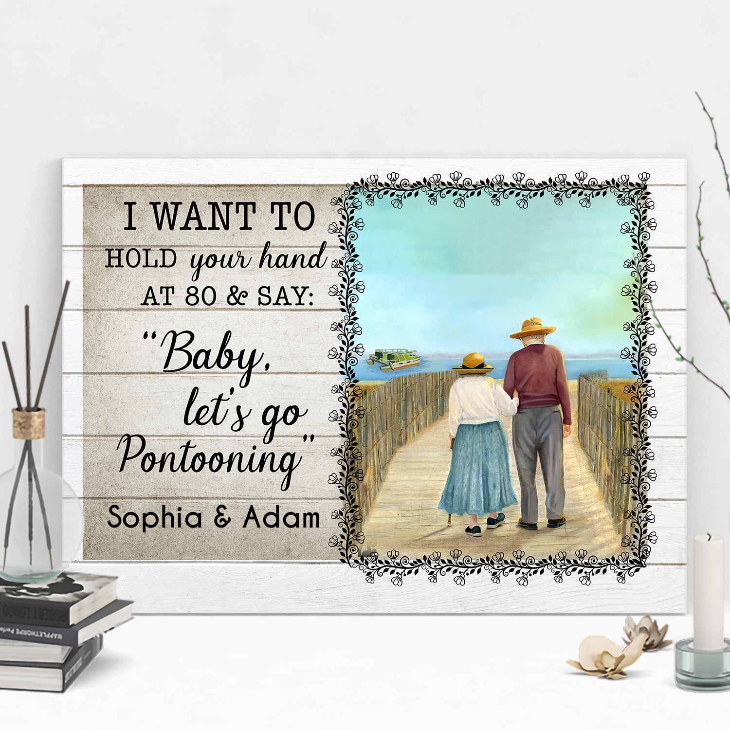 Let’s Shop Personalized I Want To Hold Your Hand At 80 And Say Baby Let’s Go Pontooning Canvas Prints – Unframed Poster!