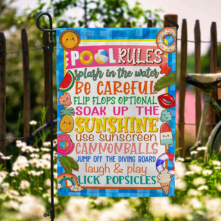 Are you spending too much time to find creative merchandise for you or suitable & special gifts for your mommy, your daddy, your son, your daughter, your children, your friends or someone you love? The struggle is over because we have various Pool Rules Flag, Pool Rules Garden Flag, Pool Rules Signs Garden Flag, Pool Rules House Flag, Pool Rules Flag Outdoor Funny, Pool Party Flag, Pool Party Yard Flag, Pool Party Garden Flag, Pool Flag, Pool Garden Flag, Welcome to Our Pool Flag which will make perfect presents for your beloveds. In order to make your present stand out, we have created lots of unique and awesome customized photo gifts & personalized designs.