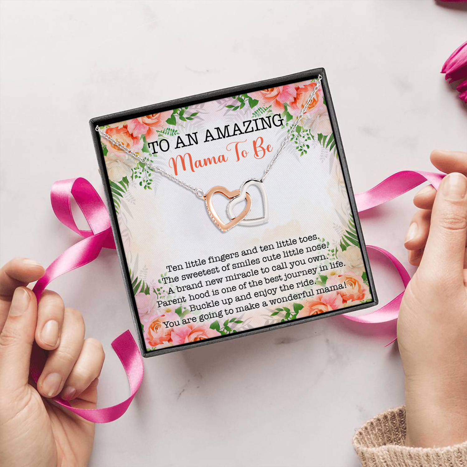 Let’s Shop To An Amazing Mama To Be Interlocking Hearts Pendant Necklace!