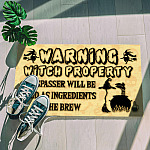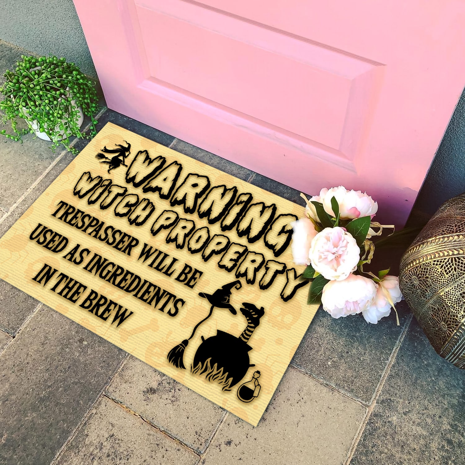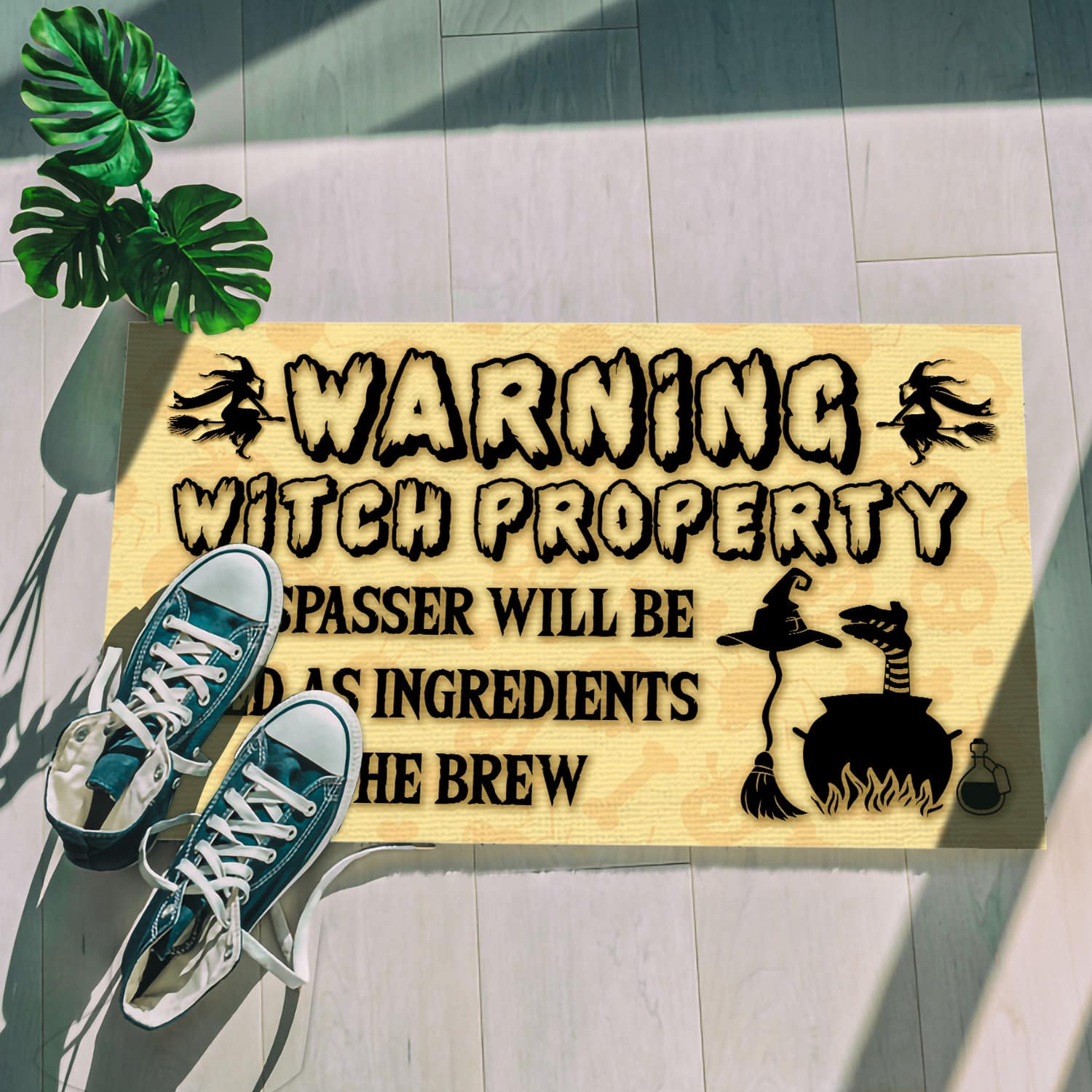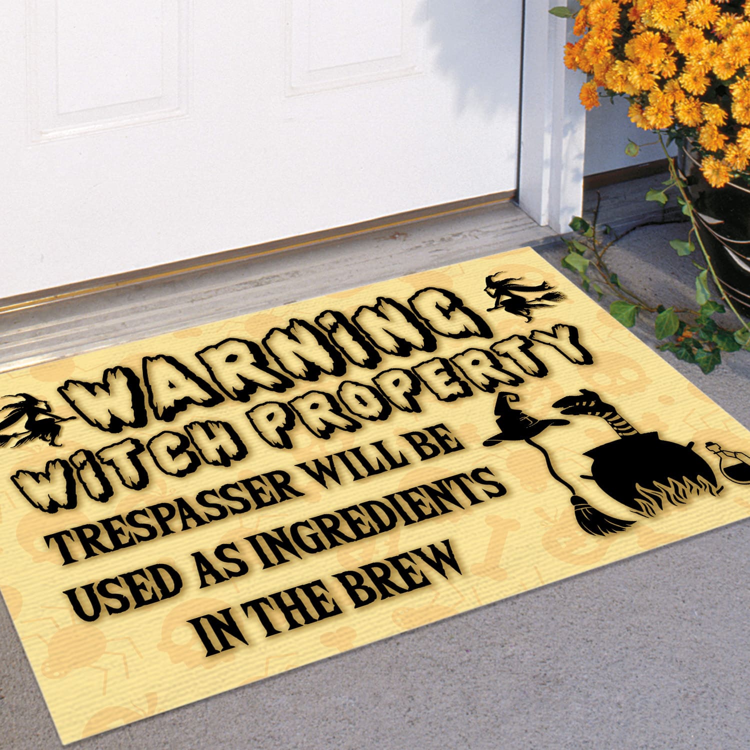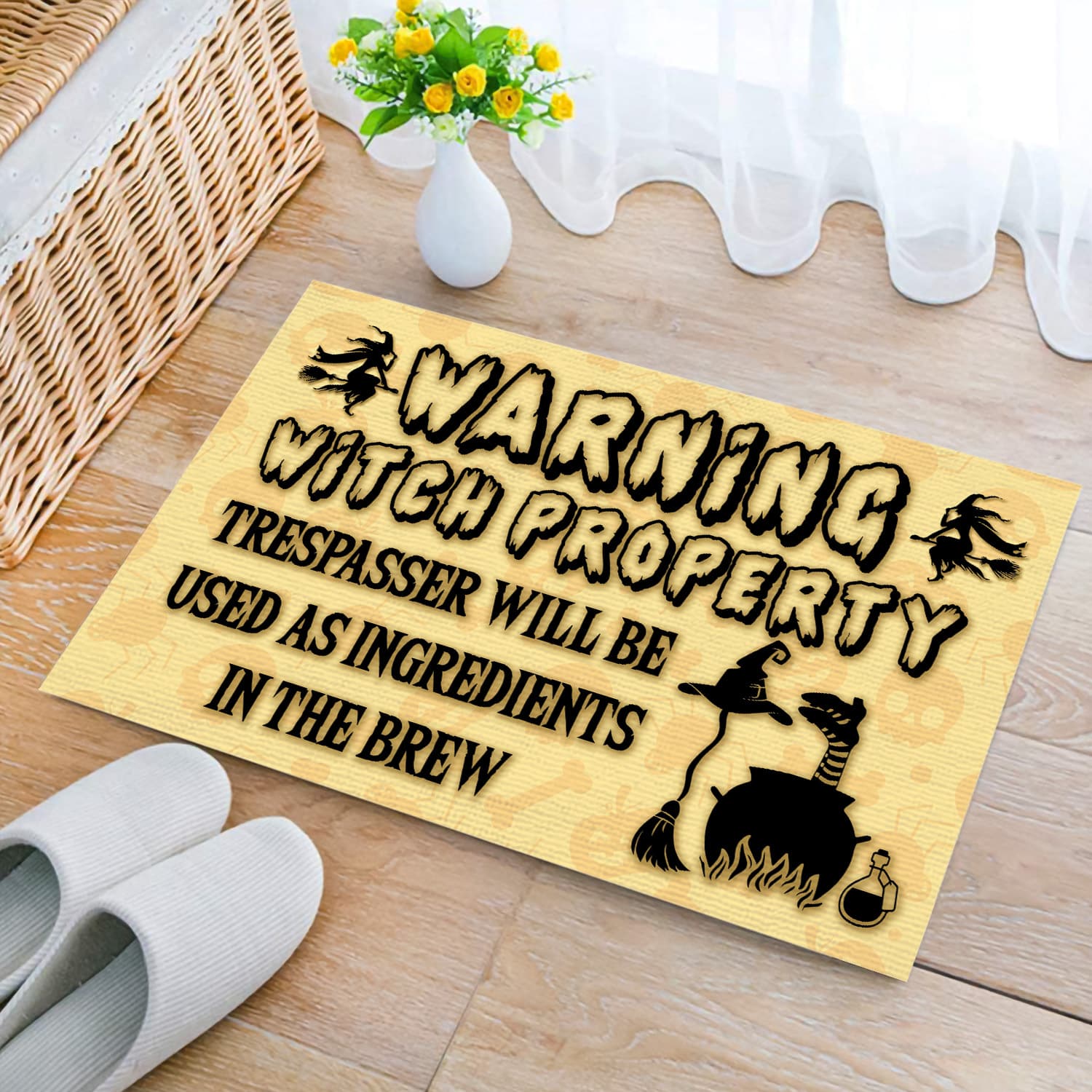Let’s Shop Halloween Warning Witch Property No Trespassing Indoor Outdoor Doormat – Witch Doormat!