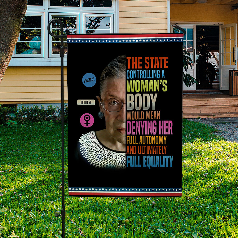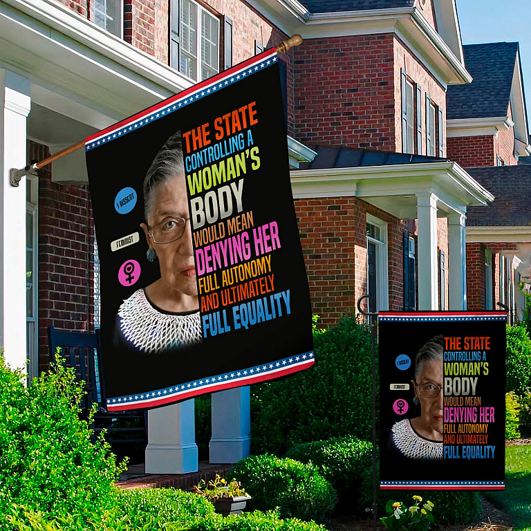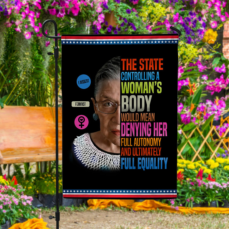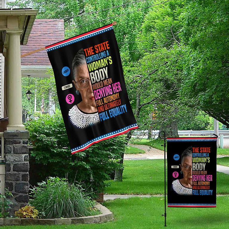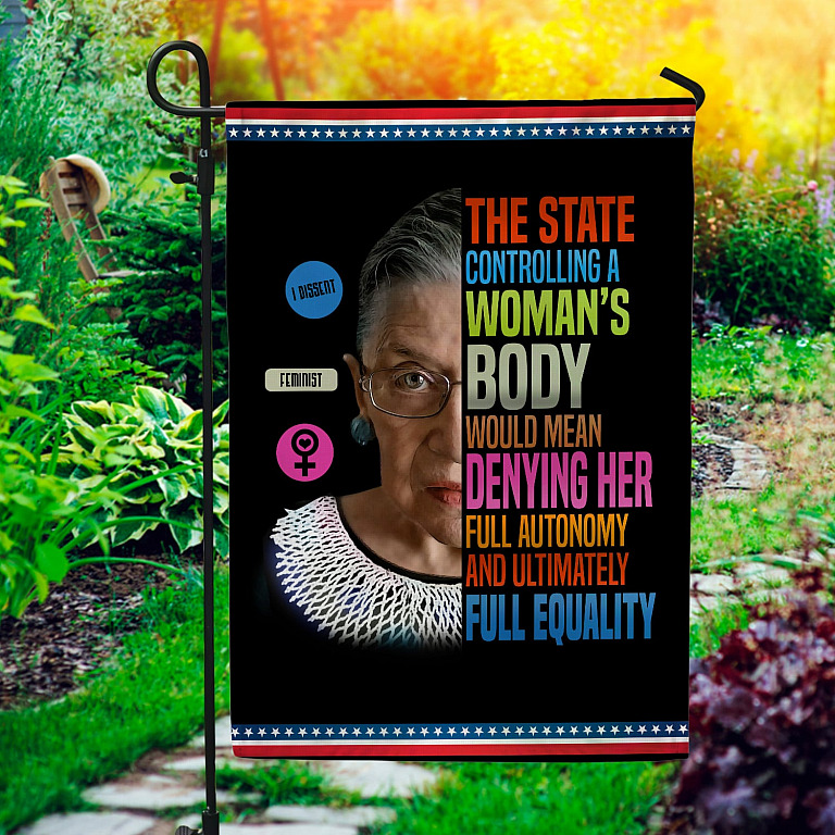 Let’s Shop The State Controlling A Woman’s Body Would Mean Denying Her Feminist Decorative Garden Flag – RBG Quote House Flag!